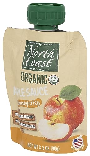 North Coast Organic Apple Sauce, Honeycrisp, No Added Sugar, No Artificial Colors or Preservatives, 60 Calories per Serving, Kosher, USDA Certified Organic, Gluten Free & Non-GMO, 4 Count, 12.8 Ounce (Pack of 6)