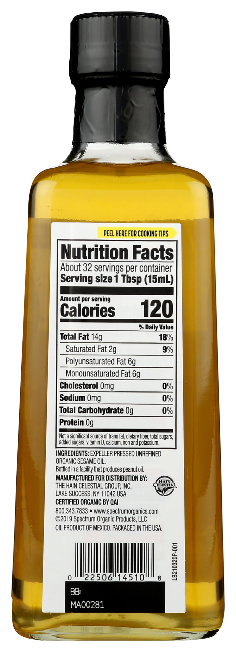 Spectrum Naturals Organic Sesame Oil, Unrefined, Non GMO, 16 Fluid Ounces (Pack Of 1)