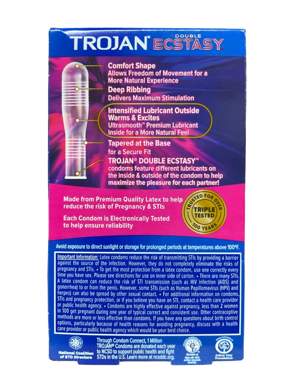 Trojan Premium Latex Condoms Double Ecstasy - 10ct, Pack of 6
