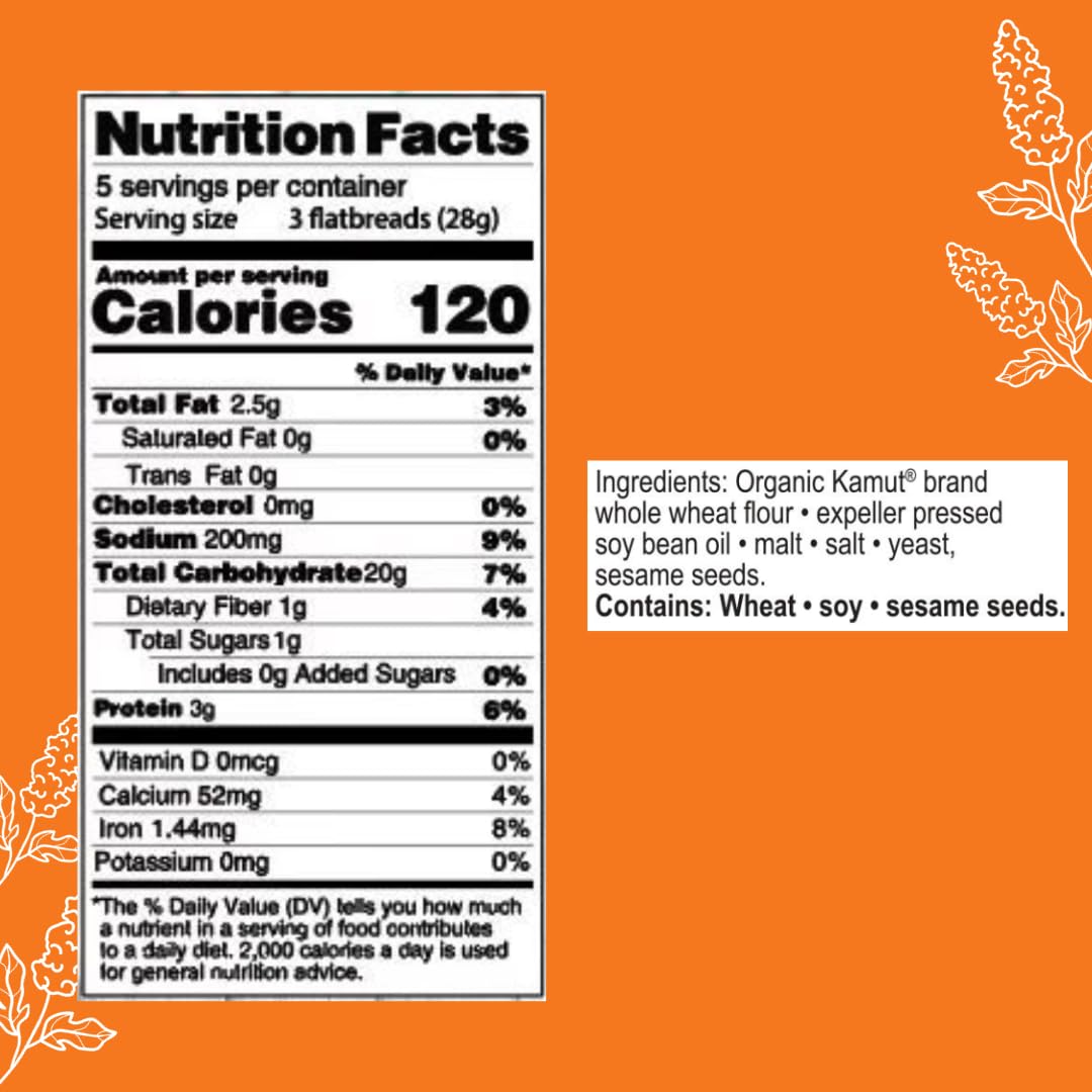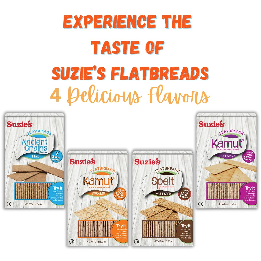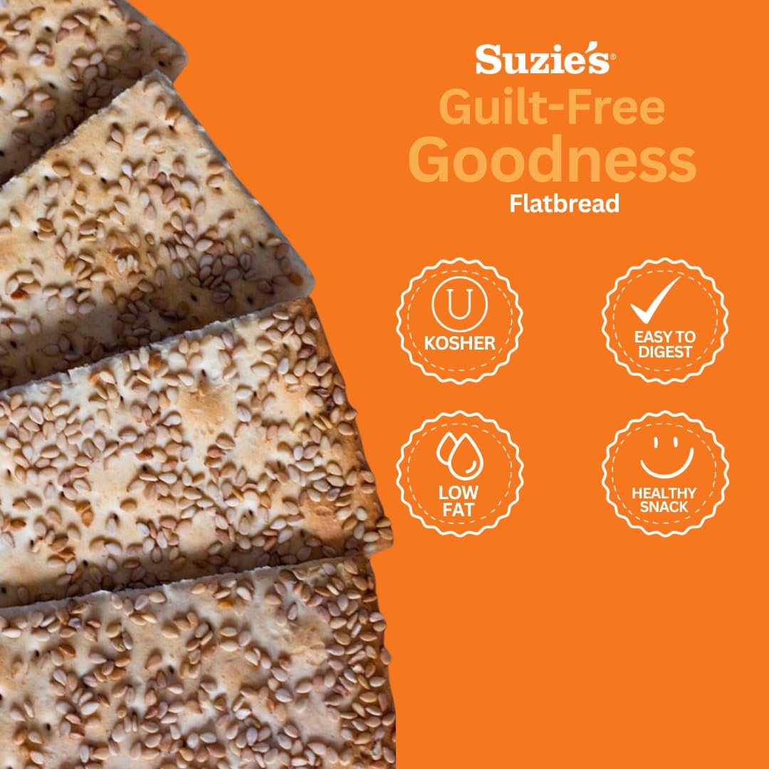 Suzie's Kamut Sesame Flatbread Crackers| Pack of 6 | Low-Fat & Vegan, Kosher, Whoelgrain | Low Carb Healthy Snack Option | 4.5 oz each