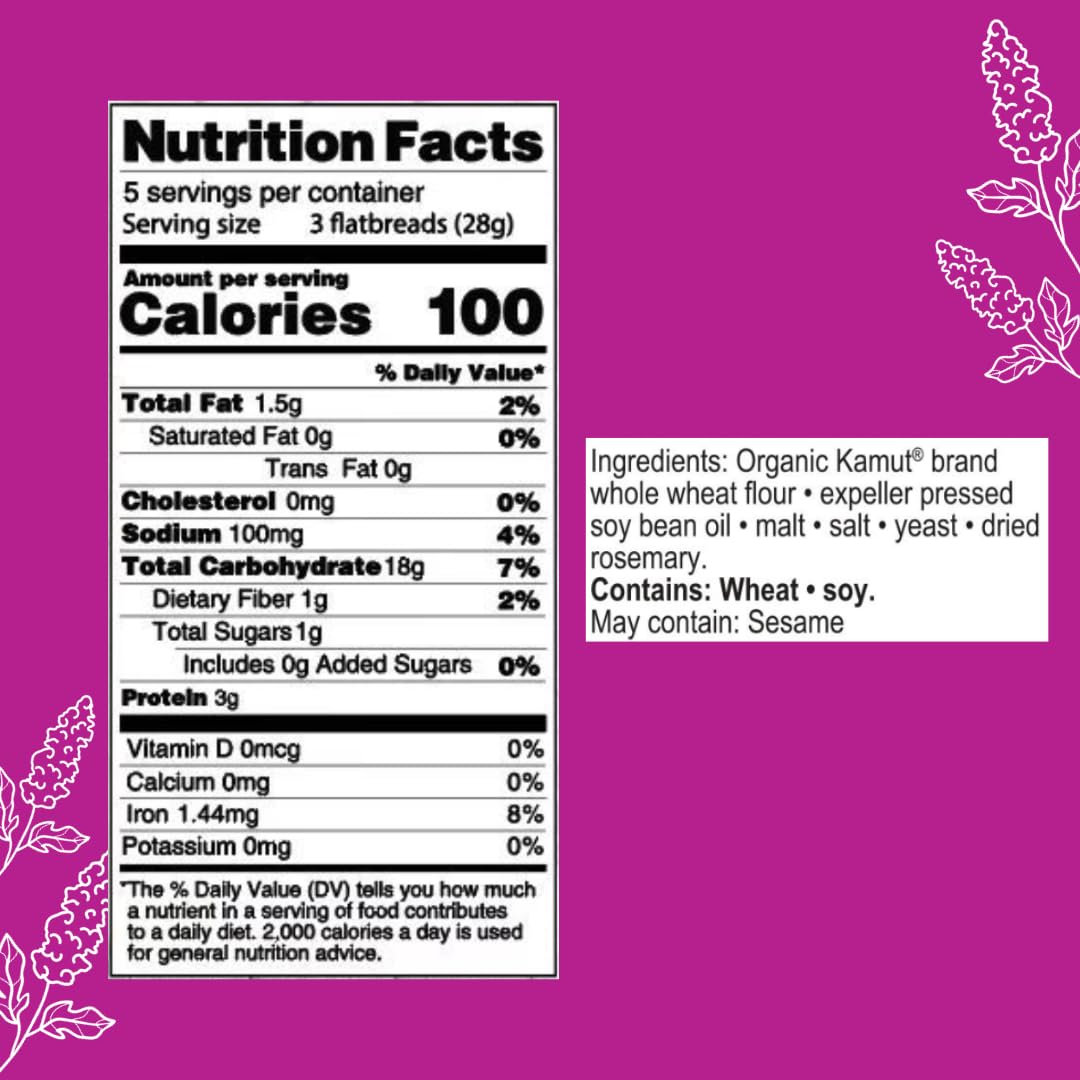 Suzie's Kamut Rosemary Flatbread Crackers| Pack of 12 | Low-Fat & Vegan, Kosher, Whoelgrain | Low Carb Healthy SnackLow Carb | Charcuterie | 4.5 oz each