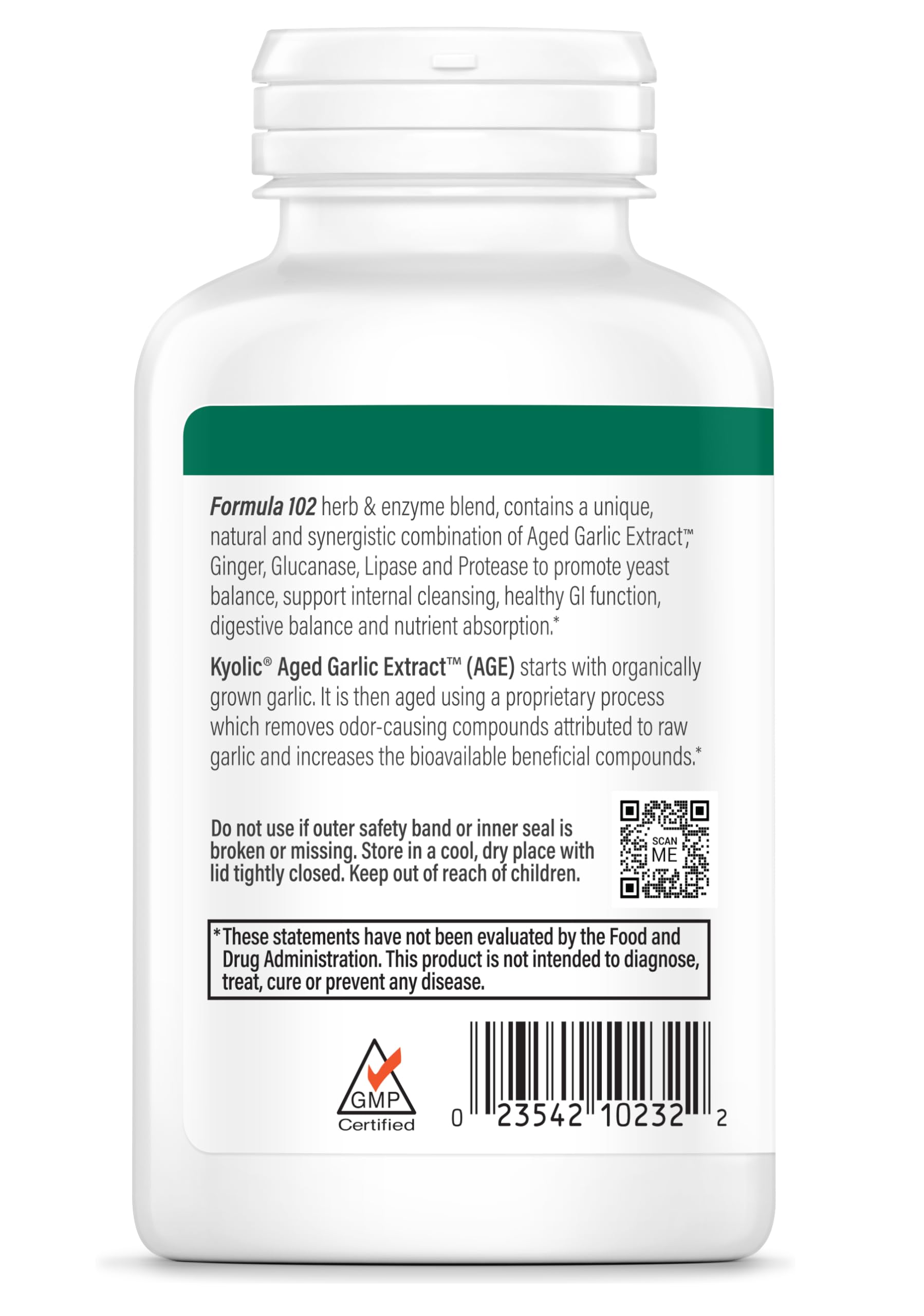 Kyolic Aged Garlic Extract Formula 102, Cleanse & Digestion*, Ginger and Enzyme Complex, 200 Vegetarian Tablets