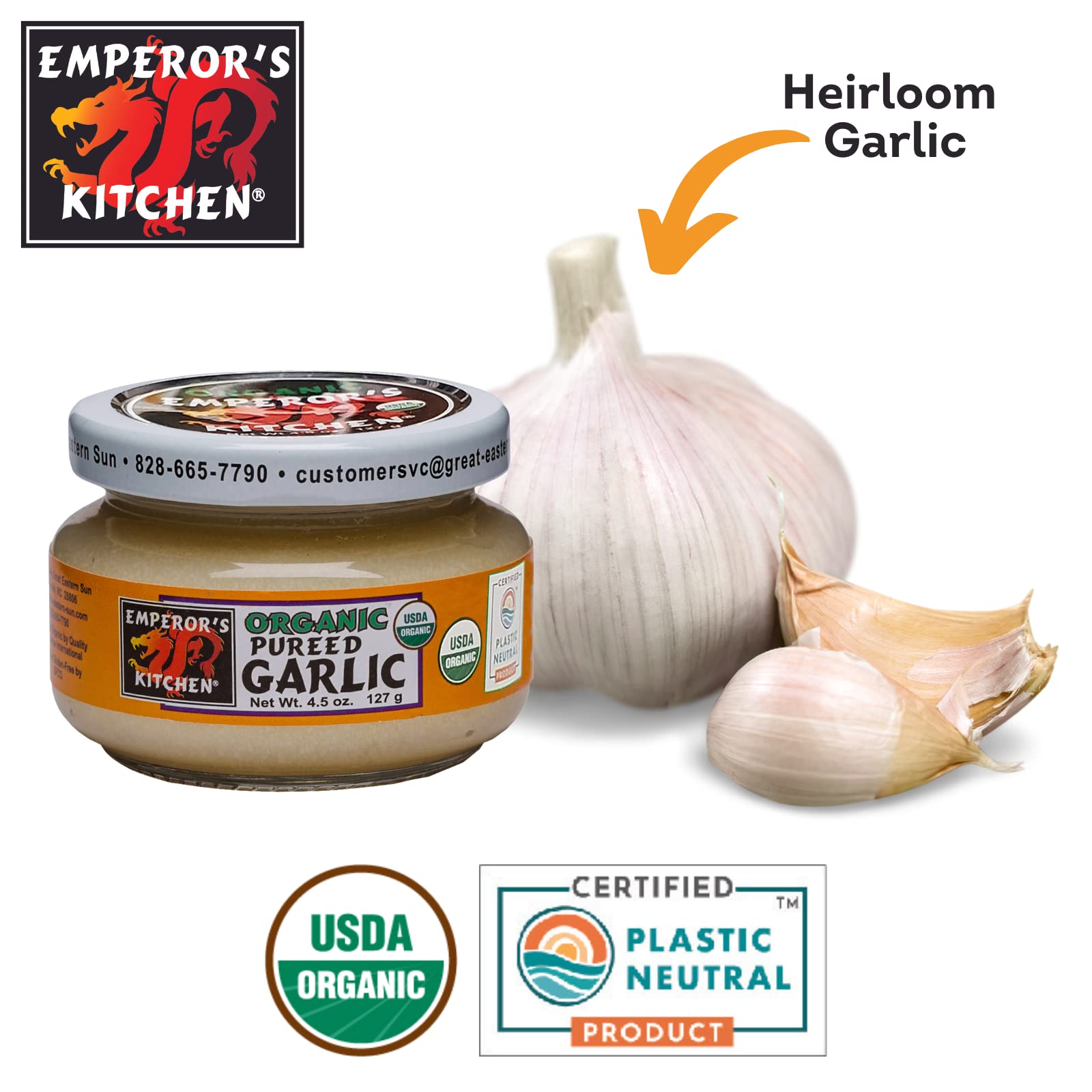 Emperor's Kitchen Organic Pureed Garlic, USDA Certified Organic, Ready to Use, Convenient for Cooking, 4.5 oz jar (pack of 1)