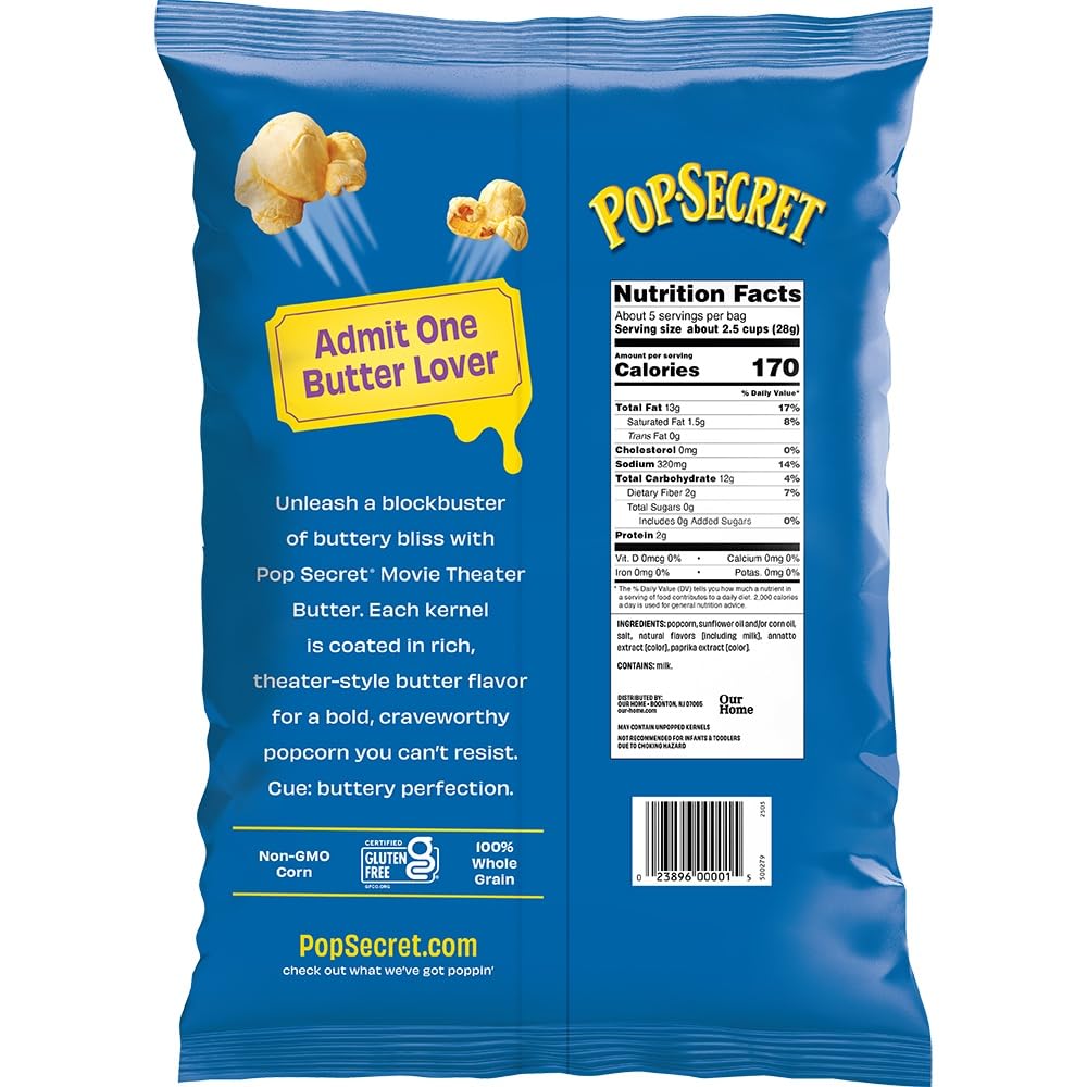 Unleash a blockbuster of buttery bliss with Pop Secret Movie Theater Butter. Each kernel is coated in rich, theater-style butter flavor for a bold, craveworthy popcorn you can't resist. Cue: buttery perfection.