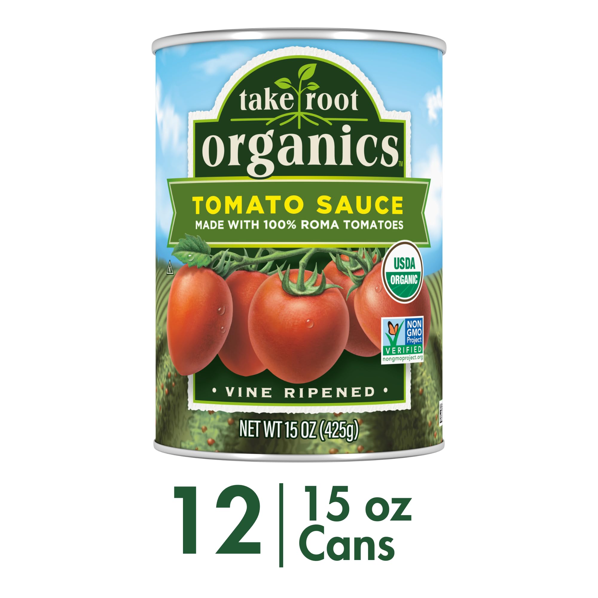 Take Root Organics Canned Organic Tomato Sauce, 15 oz Can (Pack of 12 Cans)