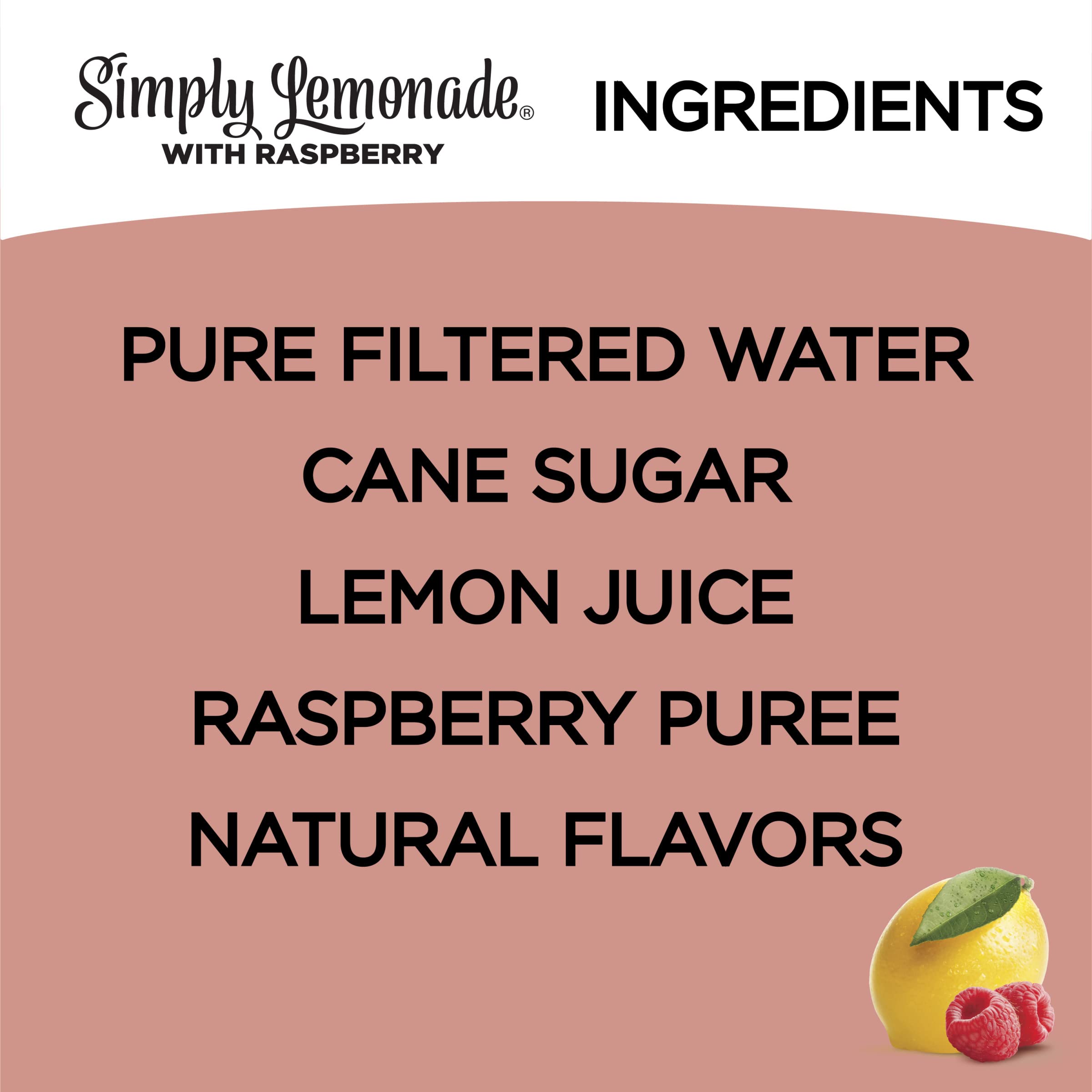 Our delicious lemonade is made simply, with natural ingredients and a delicate balance of sweet and sour. For Simply Lemonade with Raspberry, we added an extra twist—the sweet taste of raspberries. Delicious and refreshing, Simply Lemonade with Raspberry is a delightful, all-natural and non-GMO fruit juice beverage that tastes as close to homemade lemonade as you can get, all in one beautifully simple bottle. There are no surprises here. Just simple ingredients and a deliciously refreshing taste. One sip of this all-natural refreshment can take you right back to an ice-cold glass pitcher on a lazy summer afternoon or makeshift lemonade stands on quiet neighborhood streets. That’s because Simply Lemonade with Raspberry tastes as close to homemade as it gets. Be sure to try all Simply Lemonade flavors, like original Simply Lemonade, Simply Lemonade with Blueberry or Simply Lemonade with Strawberry. Simply products start with great-tasting fruit and end with great-tasting fruit juices, fruit drinks and fruit smoothies. That’s because we believe the best things in life are made simply. And we hold everything—from all-natural Simply Fruit Punch to Simply Lemonade—to the same high standard with our “Fresh Taste Guarantee.” Whatever juice or juice drink you’re looking for, the choice is simple. With Simply Lemonade with Raspberry, the difference is clear. Clear enough that you can see the all-natural ingredients inside. Because with Simply, there’s nothing to hide.