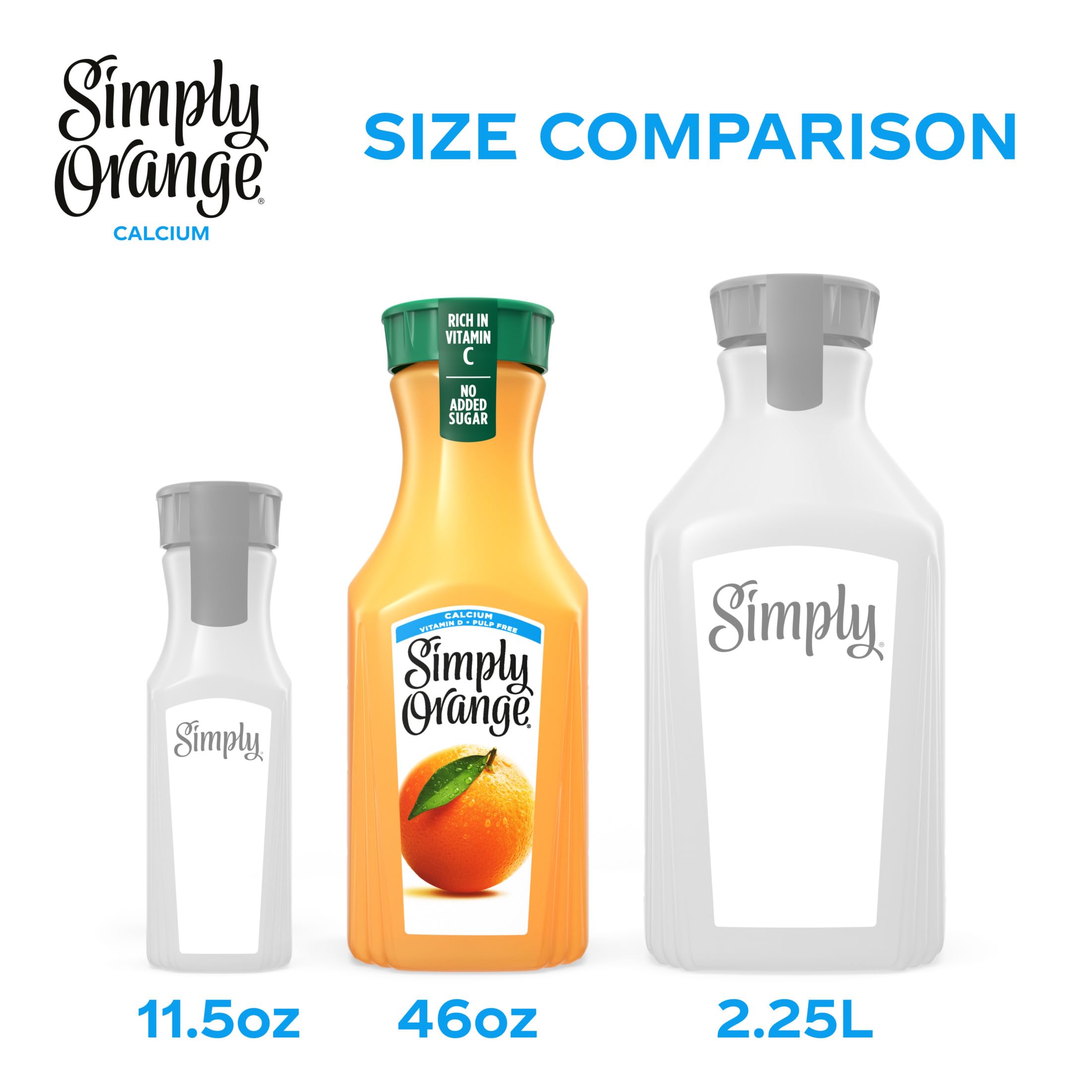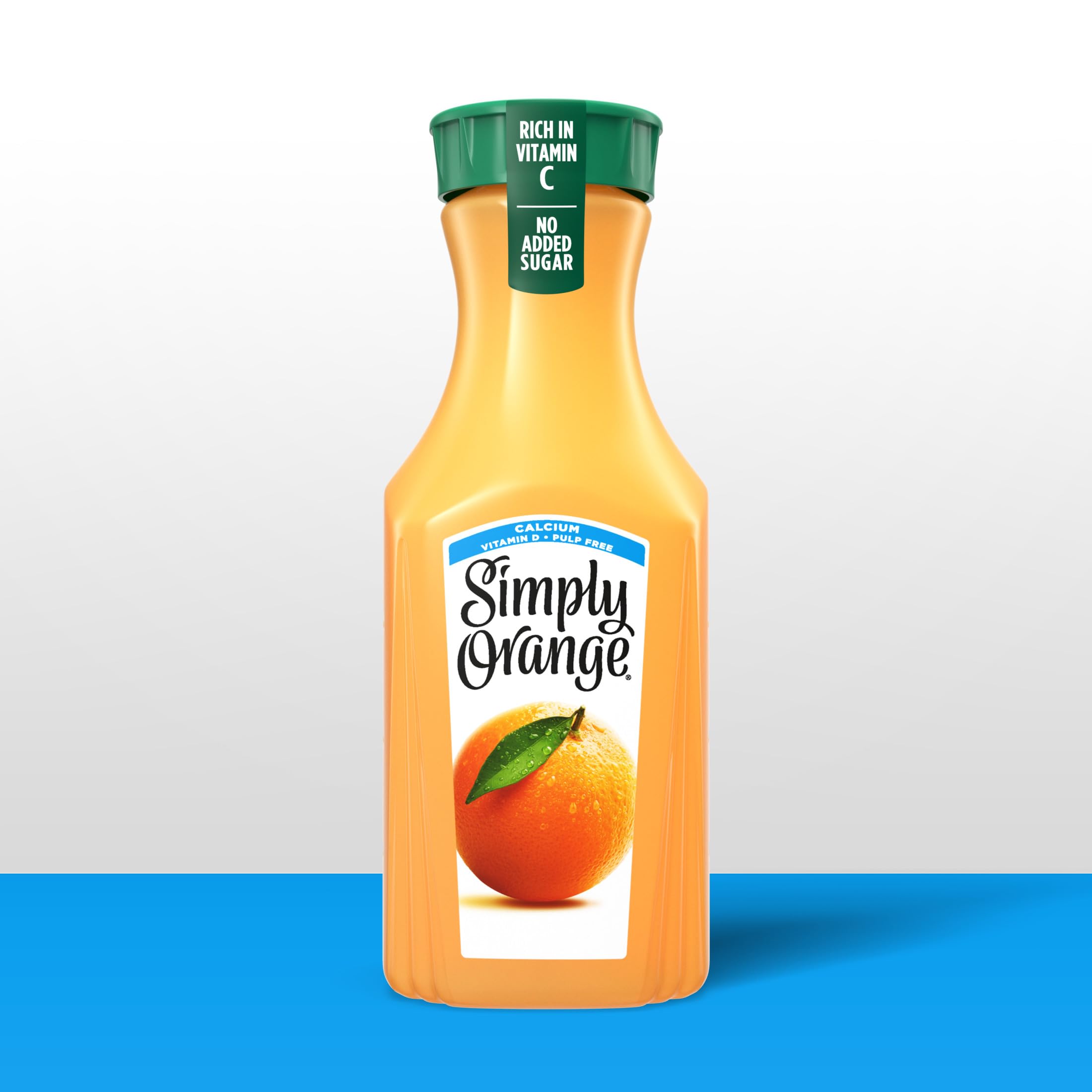 For Simply Orange Juice with Calcium, we carefully select real, ripe oranges and turn them into a deliciously simple orange juice. Not from concentrate for a deliciously fresh-squeezed taste. Simple ingredients and the Simply "Fresh Taste Guarantee" make for a refreshing non-GMO orange juice you can enjoy with breakfast, lunch or any time in between. Simply Orange Juice Calcium is 100% pure-squeezed pasteurized orange juice—everything you love with the addition of calcium, alongside the naturally occurring vitamin C. Simply products start with great-tasting fruit and end with great-tasting fruit juices, fruit drinks and fruit smoothies. That's because we believe the best things in life are made simply. And we hold everything—from Simply Fruit Punch to Simply Lemonade—to the same high standard with our "Fresh Taste Guarantee." Whatever juice you're looking for, the choice is simple. Simply Orange Juice with Calcium—the difference is clear. Because with Simply, there's nothing to hide.
