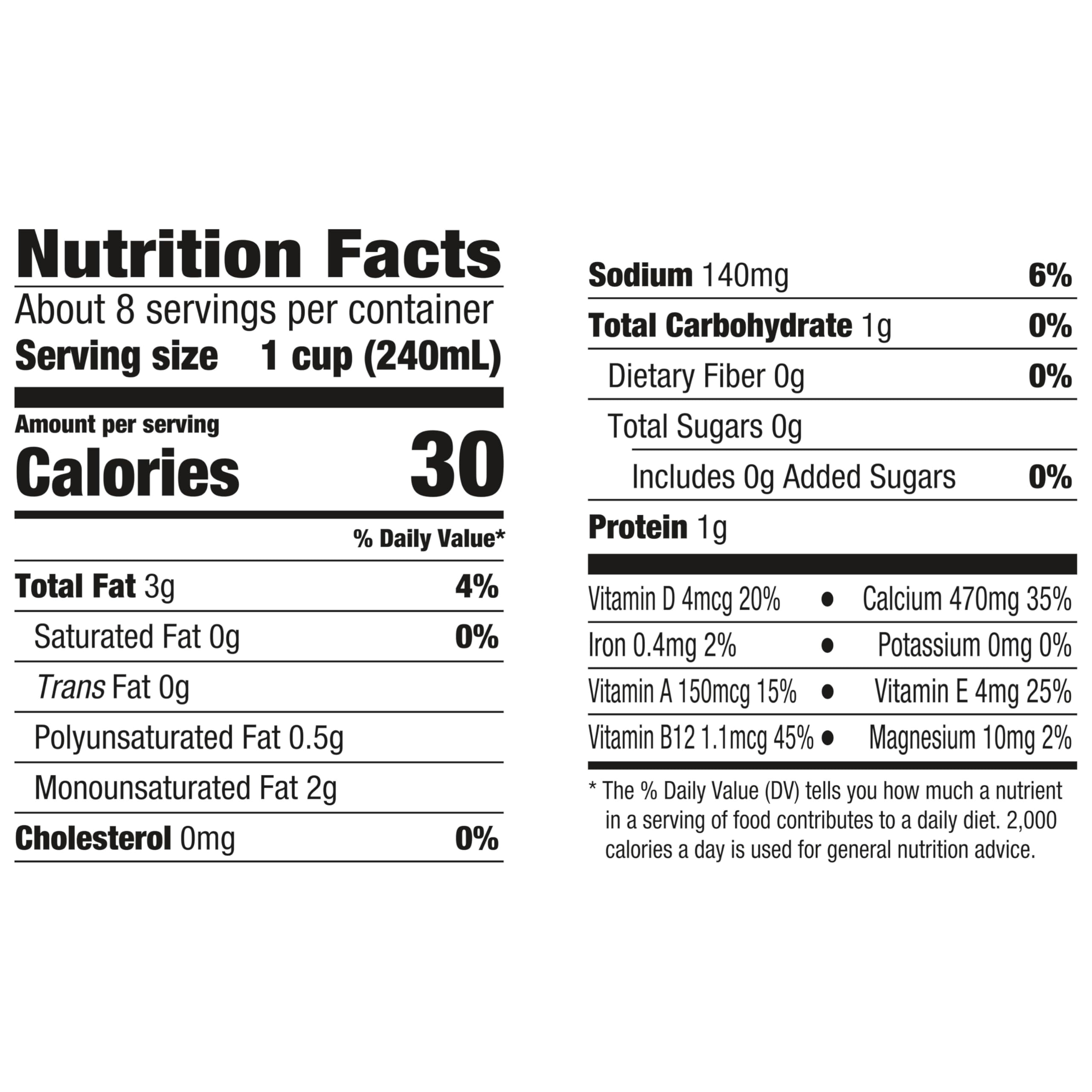 Treat yourself to this smooth and seriously creamy Silk Unsweet Almondmilk. Enjoy all of the taste with 0 grams of sugar per serving*. Made with three kinds of almonds grown by Mother Nature and picked at the peak of ripeness, this almondmilk has a perfect mix of quality and flavor. Plus, its smooth flavor makes it an extraordinary tasting, plant based milk that you can use throughout your day. It tastes great in healthy cereal and smoothies. Every serving of this non dairy milk has Vitamin D to help support strong bones and 50% more calcium than dairy milk**. Silk Almondmilk is totally free of dairy, soy, lactose, gluten, casein, egg, and MSG. Looking for lactose free cooking or baking supplies? Trust Silk — the Original Plant Pioneer. It’s not just almondmilk, it’s Milk of the Land***. Read more about our story on our packaging. Enjoy all of the Silk products, including vegan milk, non dairy creamer and dairy free yogurt varieties. *See Nutrition Facts for sugar and calorie content. **Silk Almondmilk: 470mg of calcium per cup; reduced fat dairy milk: 309mg of calcium per cup. USDA FoodData central, 2022. ***From plants, not cows. Not nutritionally equivalent to dairy milk.