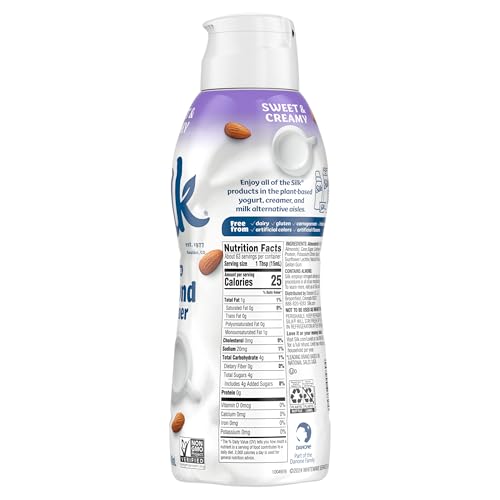Silk Almond Creamer, Sweet and Creamy, Smooth, Lusciously Creamy Dairy Free and Gluten Free Creamer From the No. 1 Brand of Plant Based Creamers, 32 FL OZ Carton