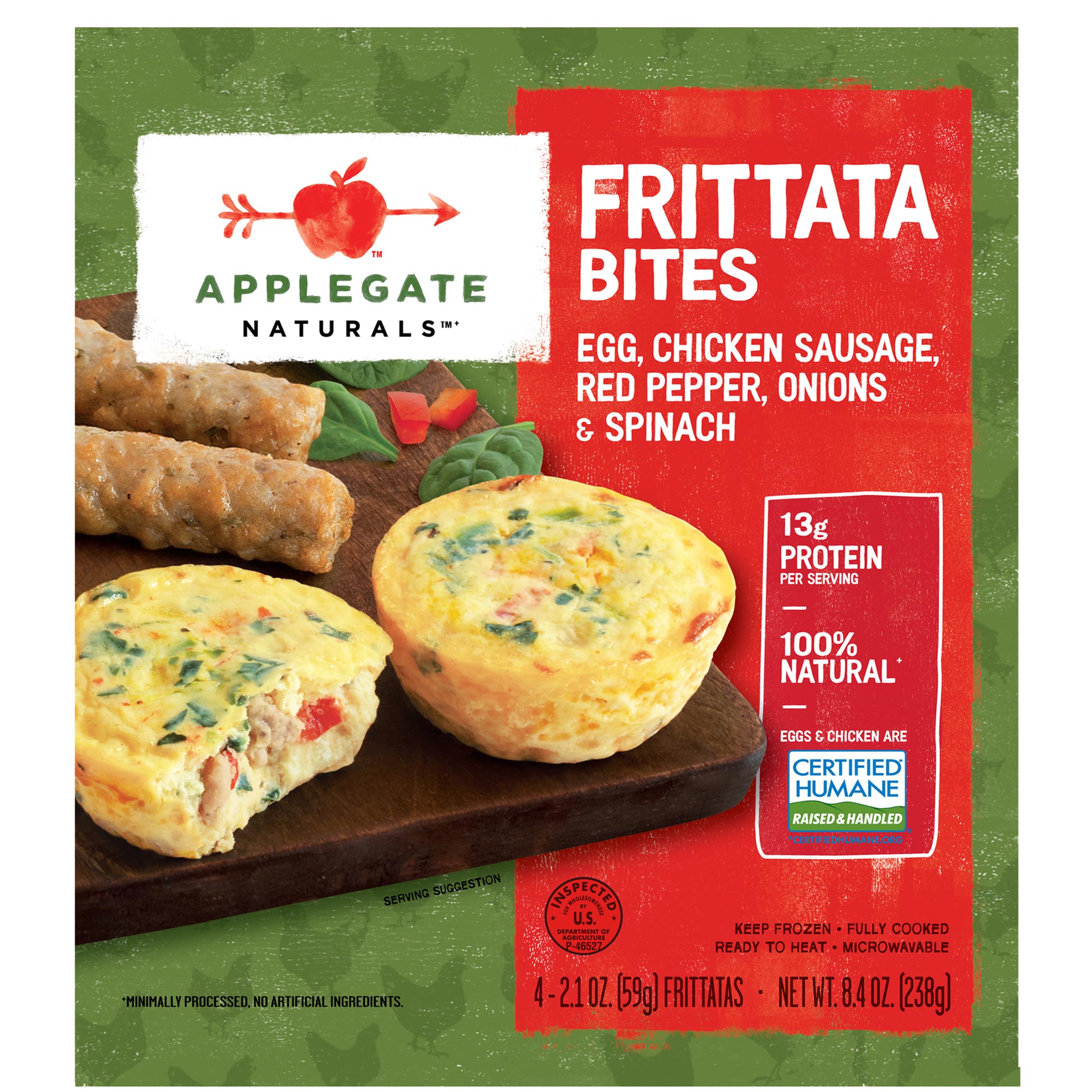 Applegate Farms Chicken Sausage, Red Pepper, Onions & Spinach Frittata Bites, 8.4 OZ