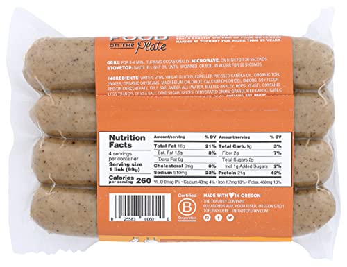 Tofurky Vegan Beer Brat Sausage, 14 Ounce (Pack of 5)