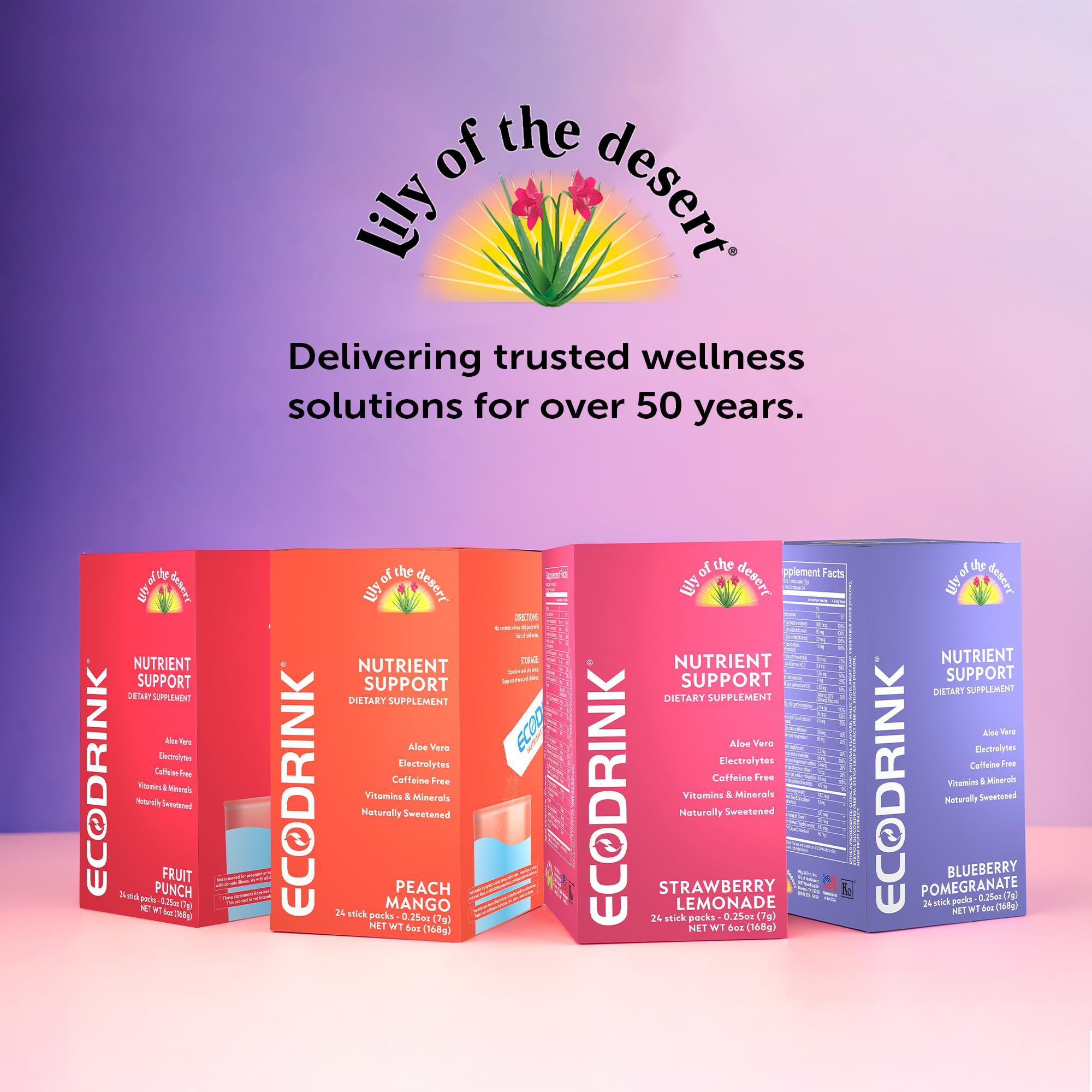 Eco Drink Nutrient Support Packets, Fruit Punch – Naturally Sweetened Multivitamin Electrolyte Mix with Aloe, 24 Stick Packs/Box, 0.25 Oz Ea by Lily of The Desert