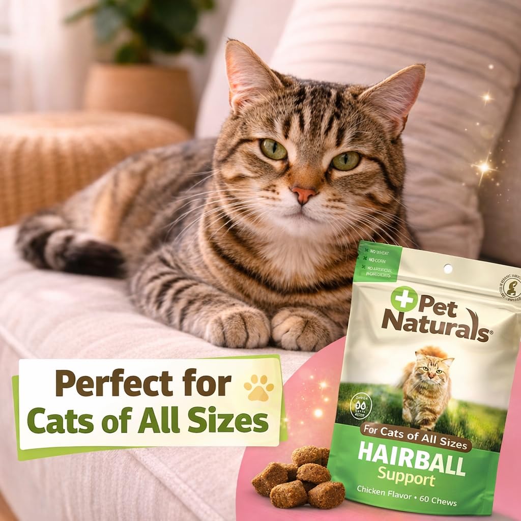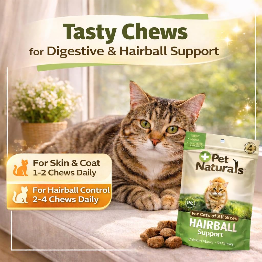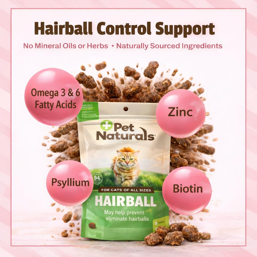 Pet Naturals Hairball Relief for Cats, 30 Chicken Liver Flavored Soft Chews, Hairball Treatment with Psyllium, Omega 3 & 6, Zinc and Biotin, Supports Digestion & Skin Coat, No Corn or Wheat