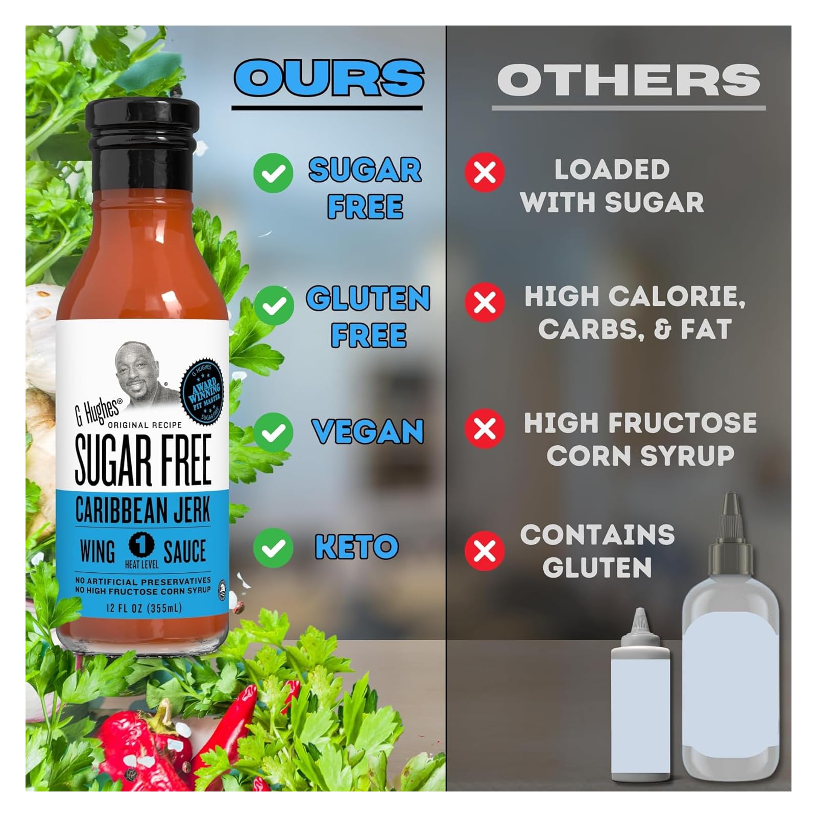 G. Hughes Smokehouse Sugar Free Wing Sauce (12 oz) - Caribbean Jerk, Mild