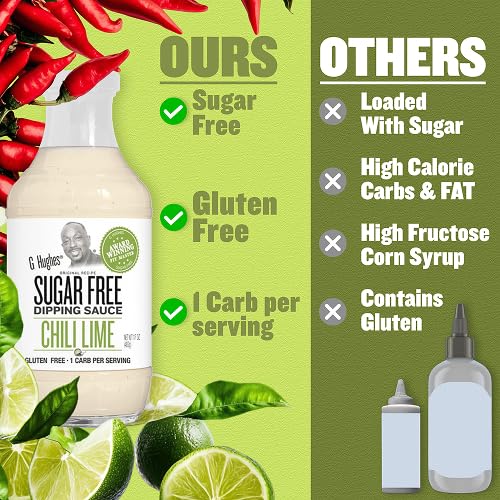 G Hughes Sugar Free Chili Lime Dipping Sauce - Sweet Chili Dressing for Wings, Seafood, Shrimp, Sweet, Sour & Spicy Dip, Marinade for Cooking - 17 Fl Oz Bottle (Pack of 1)