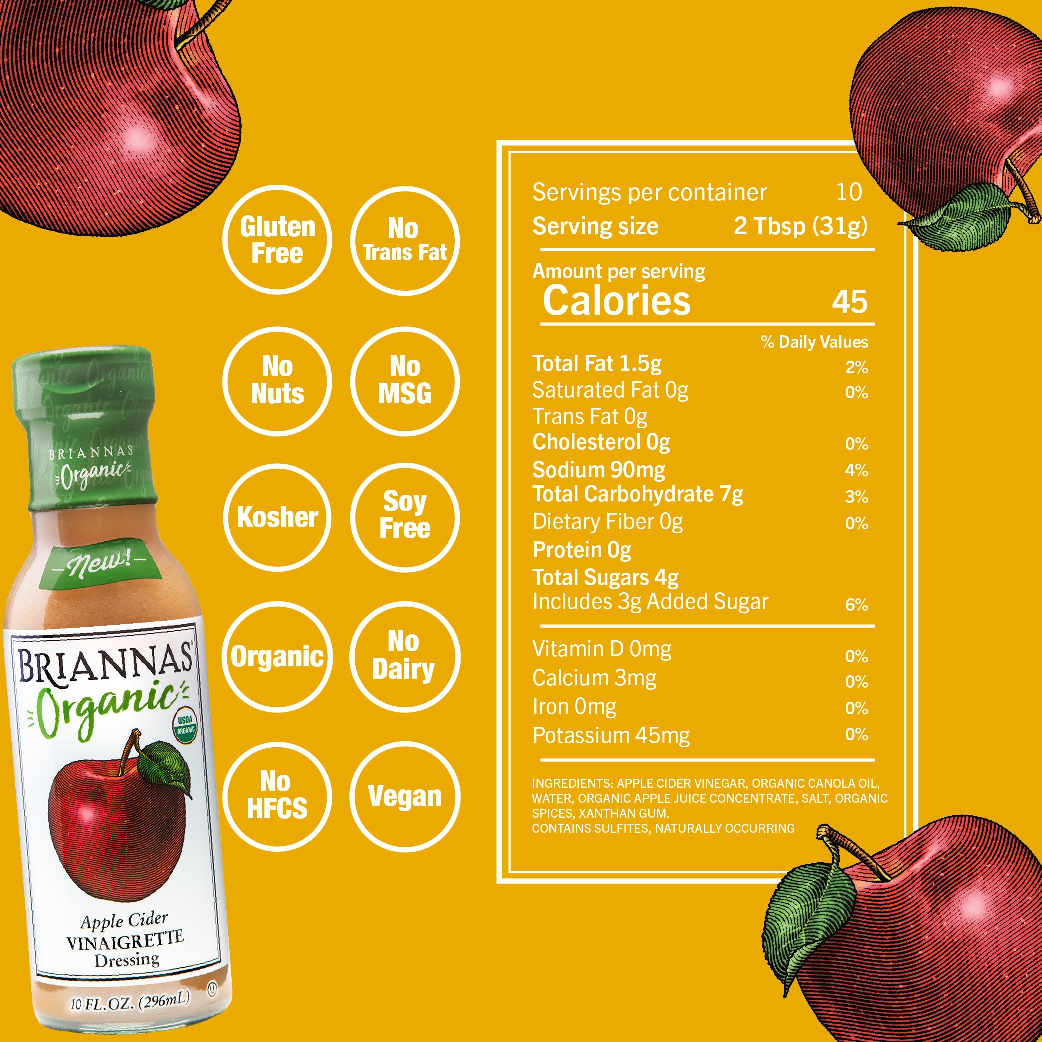 BRIANNAS - Organic Apple Cider Vinaigrette Dressing - Certified Kosher & Organic Salad Dressing made with Premium Ingredients - 10 oz. Bottle