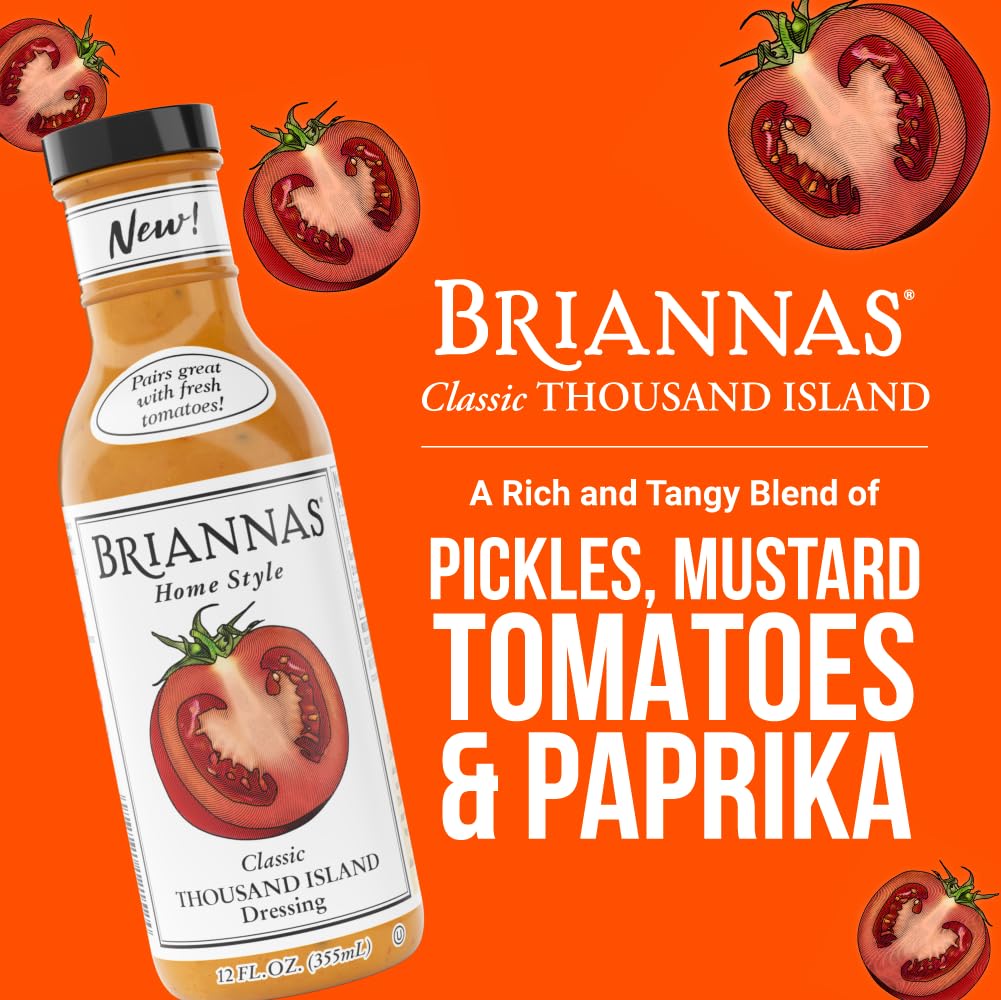 BRIANNAS - Home Style Thousand Island Dressing - Fine Salad Dressing made with Premium Ingredients - Gluten Free and Kosher Salad Dressing - 12 oz. Bottle