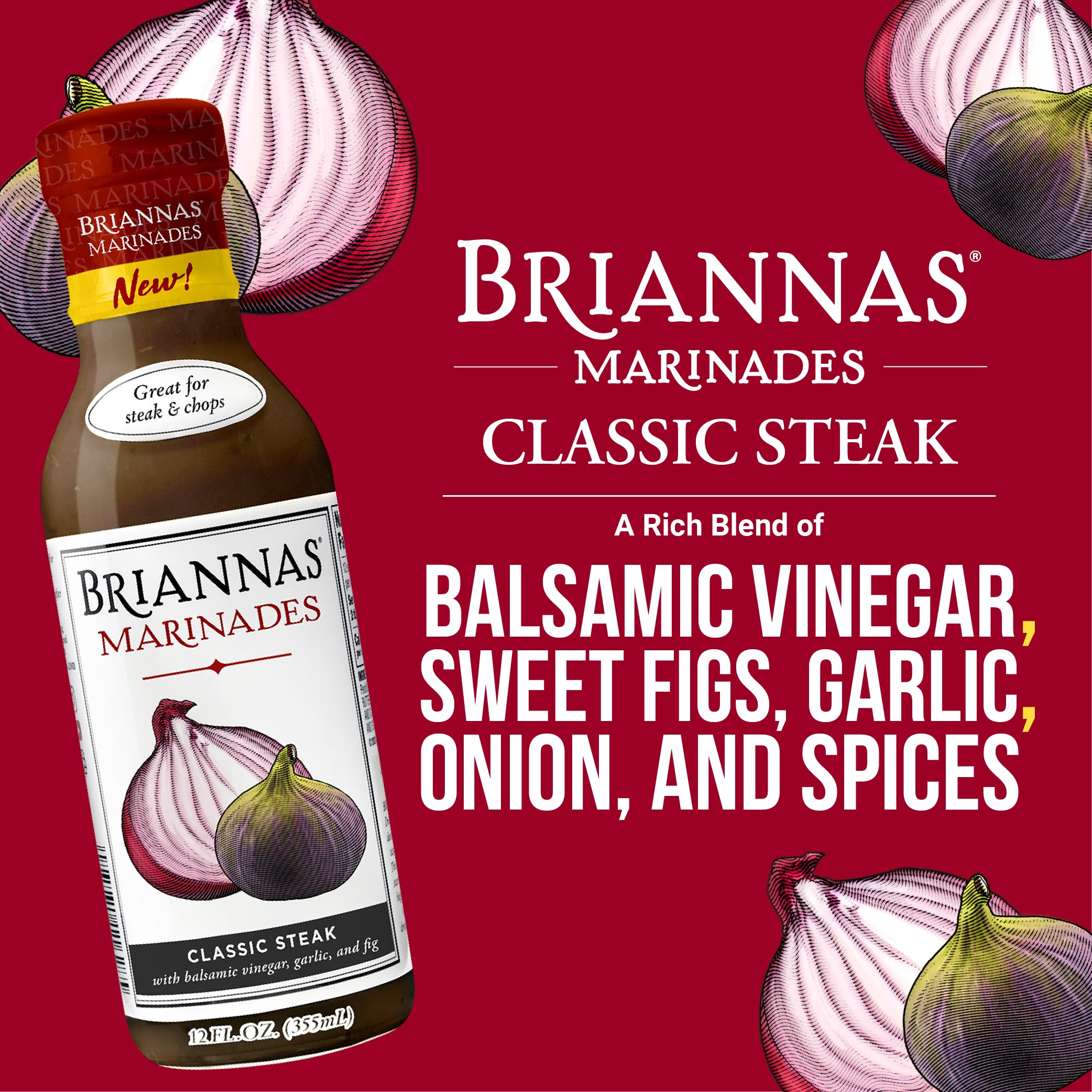 BRIANNAS - Classic Steak Marinade - Small Batch, Gluten Free, Vegan Marinade made with Premium Ingredients - 12 oz. Bottle