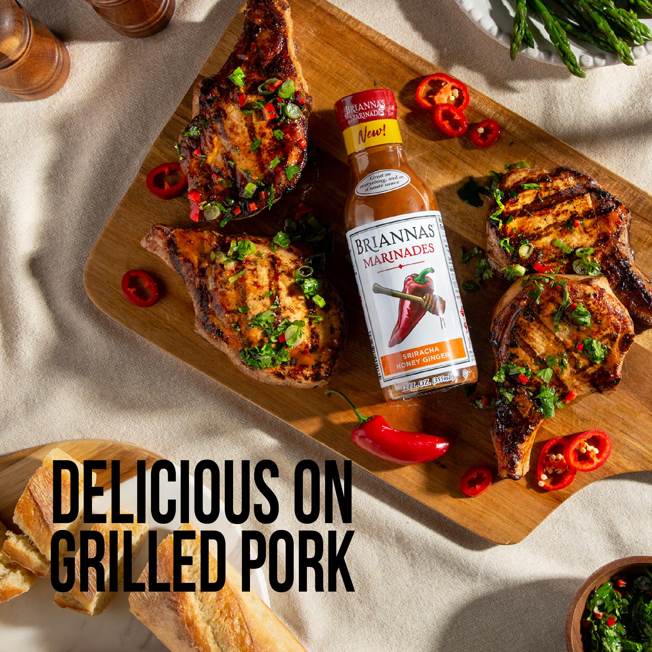 BRIANNAS - Sriracha Honey Ginger Marinade - Small Batch, Gluten Free Marinade made with Premium Ingredients - 12 oz. Bottle