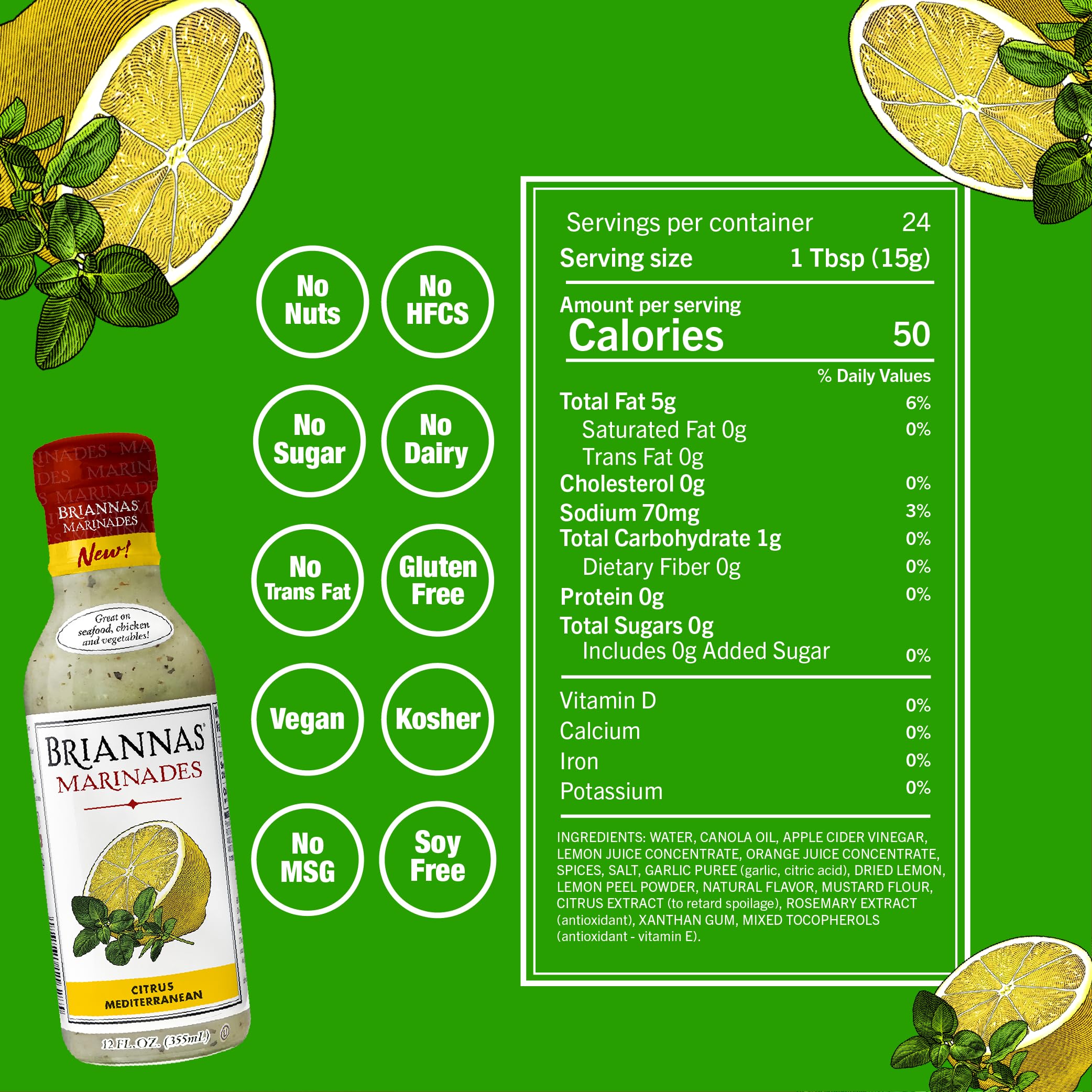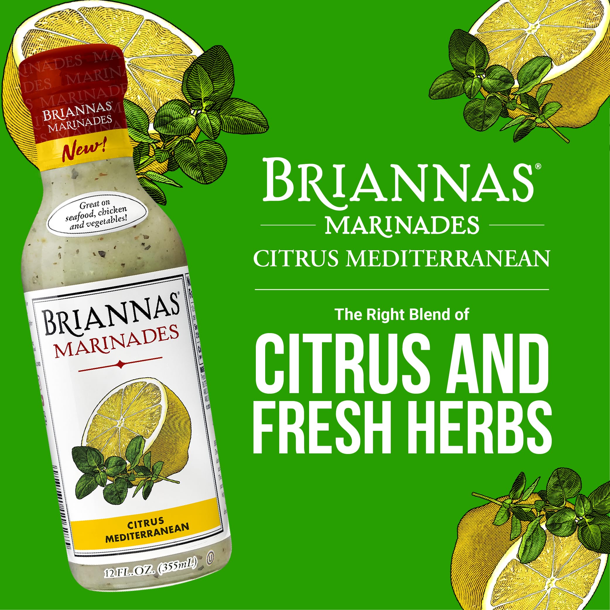 BRIANNAS - Citrus Mediterranean Marinade - Small Batch, Gluten Free, Vegan Marinade made with Premium Ingredients - 12 oz. Bottle