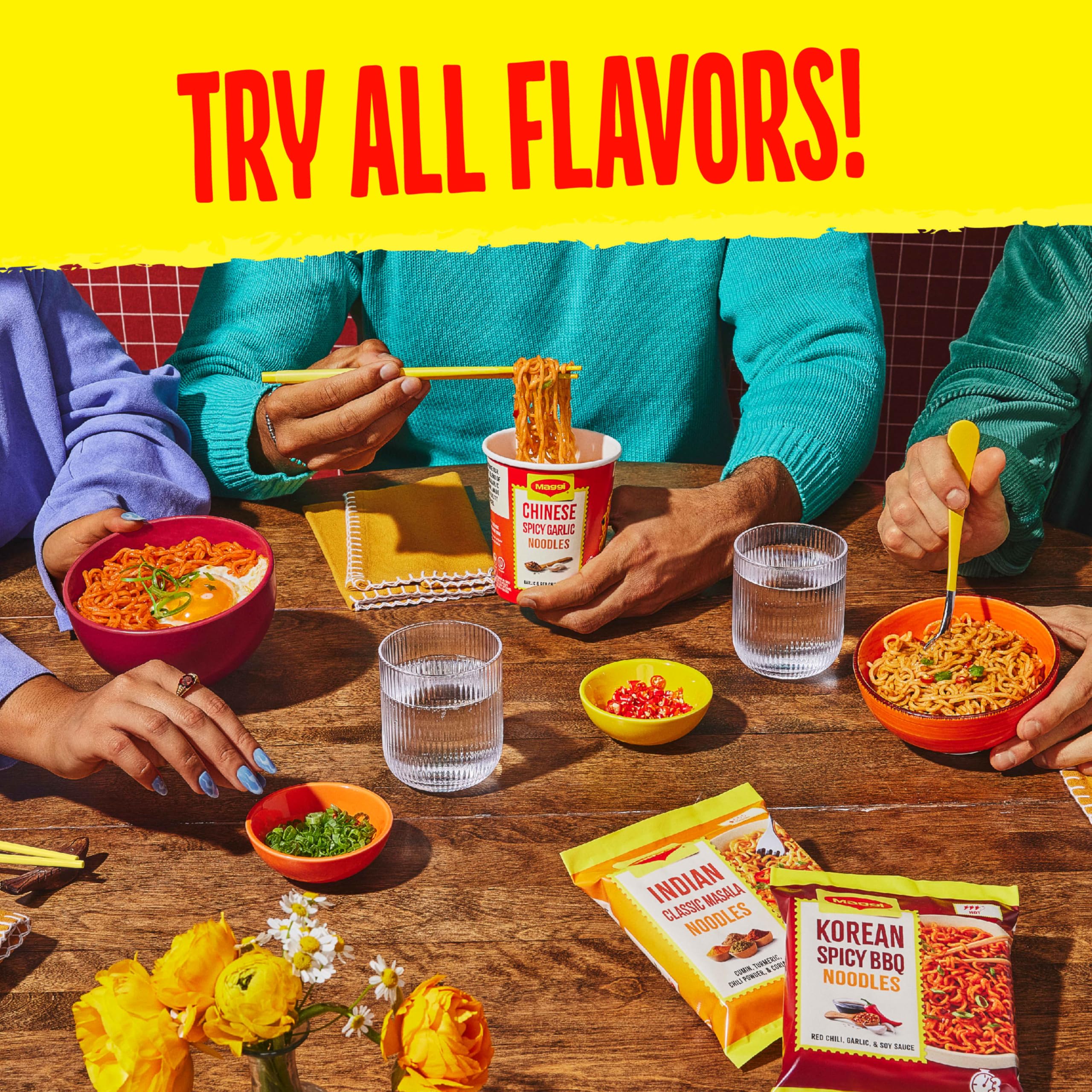 Explore global cuisine--no passport required. With Maggi Noodles, you have access to a world of bold, savory flavors whenever you want. Our Chinese Spicy Garlic Noodles are far from your ordinary instant noodles. With Maggi Noodles you’ll experience the rich and vibrant flavors of Chinese cuisine. These Chinese instant noodles have a delicious blend of sizzling garlic and a hint of red chili flakes – keeping the perfect balance of flavor and spice in every bite. At a medium spicy level, you can satisfy your need for spicy noodles. And if you’re looking to get creative, our savory instant noodles offer the perfect base to add protein, veggies, or any other ingredients you like Ready within minutes, you can be enjoying your instant ramen noodles in no time