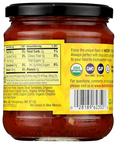 Hatch Organic Mild Salsa 16oz USDA Organic, Non-GMO, Gluten Free, Vegan