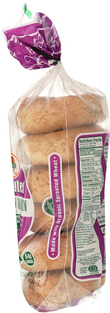 Alvarado Street Bakery Organic Sprouted Wheat Cinnamon Raisin Bagel, 20 Ounce -- 6 per case.