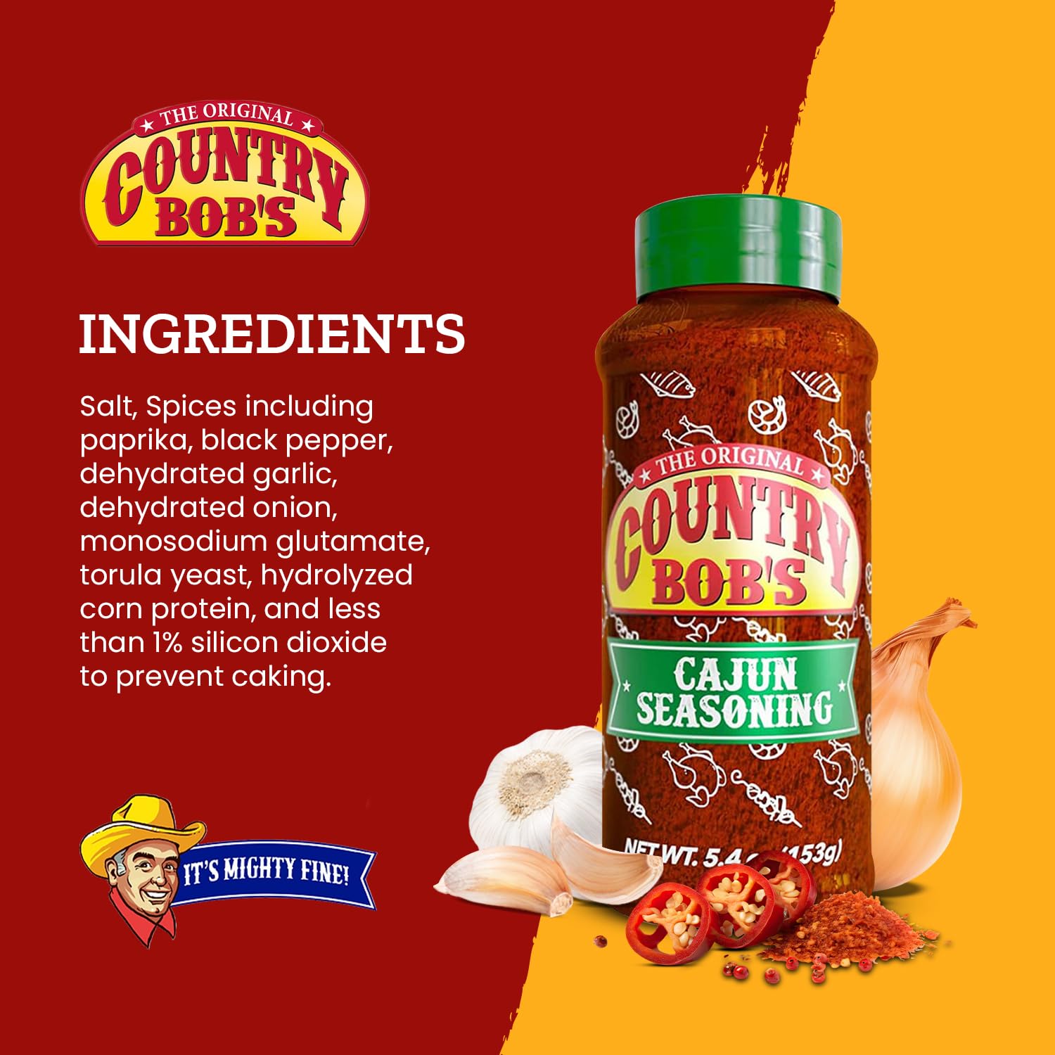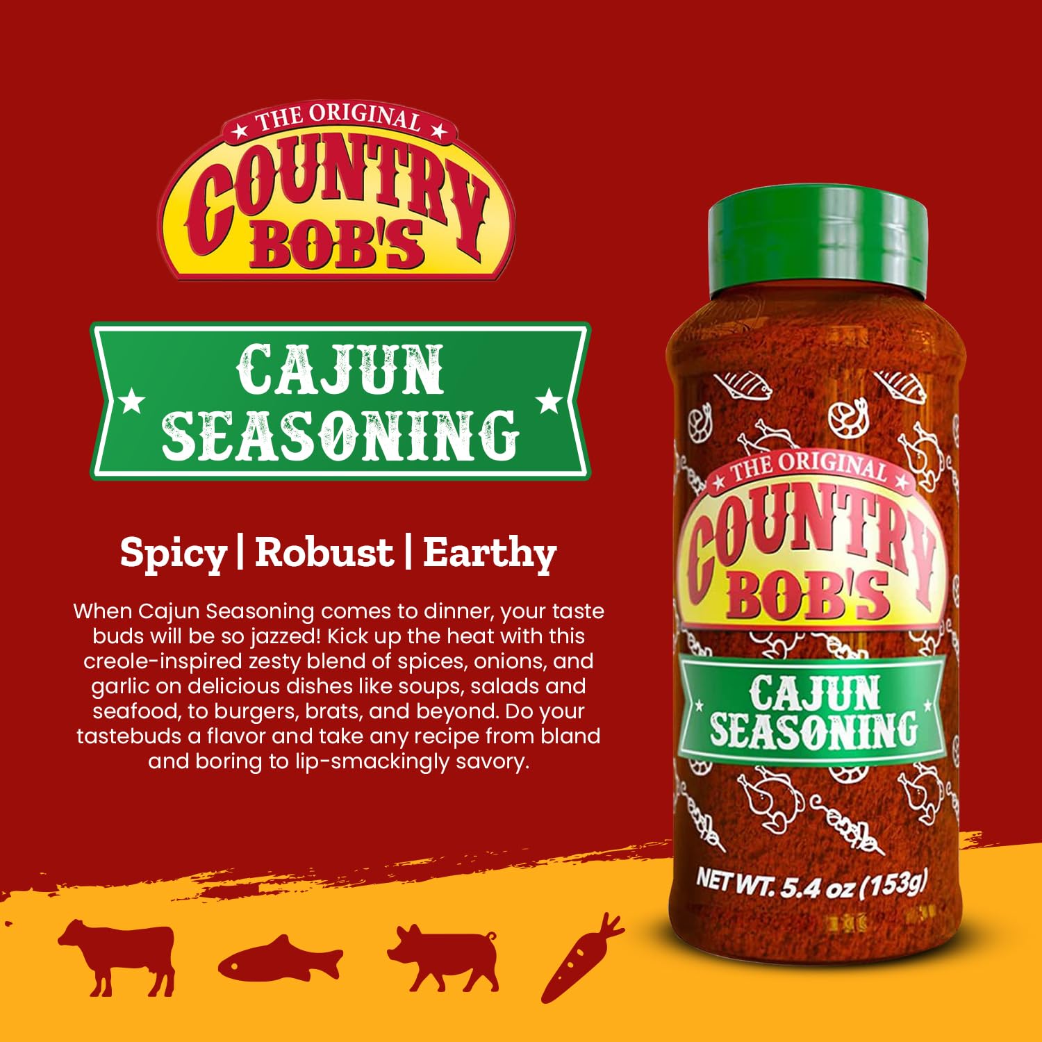 Country Bob's Cajun Seasoning - Spicy, Robust, Earthy Blend for Flavorful Creole Dishes - Soups, Salads, Seafood, Burgers, and More - Includes Paprika, Black Pepper, Garlic, Onion, and More - 5.4 oz
