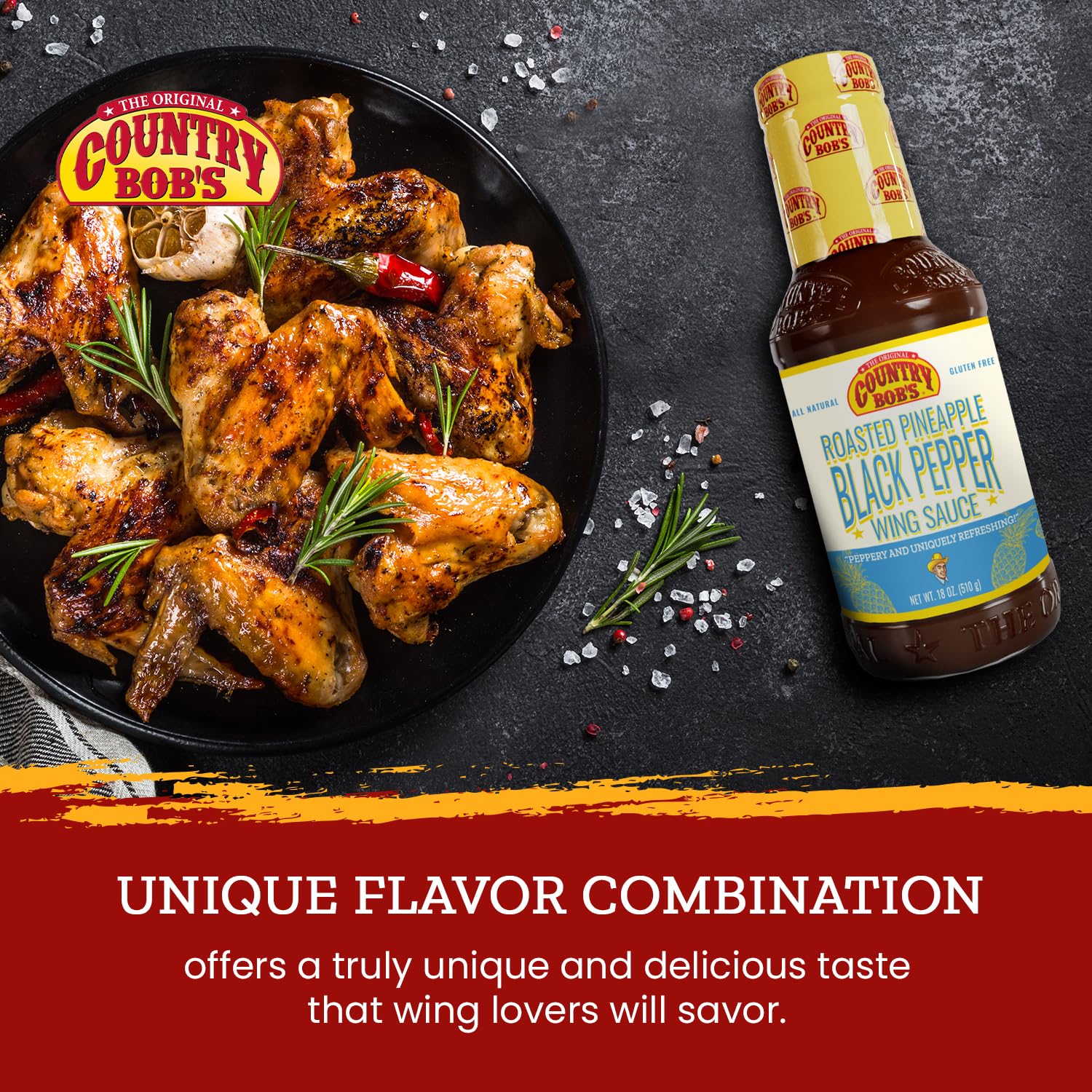 Country Bob's Roasted Pineapple & Black Pepper Wing Sauce - Sweet & Peppery, Made with Premium Ingredients, Ideal for Wings, 18oz