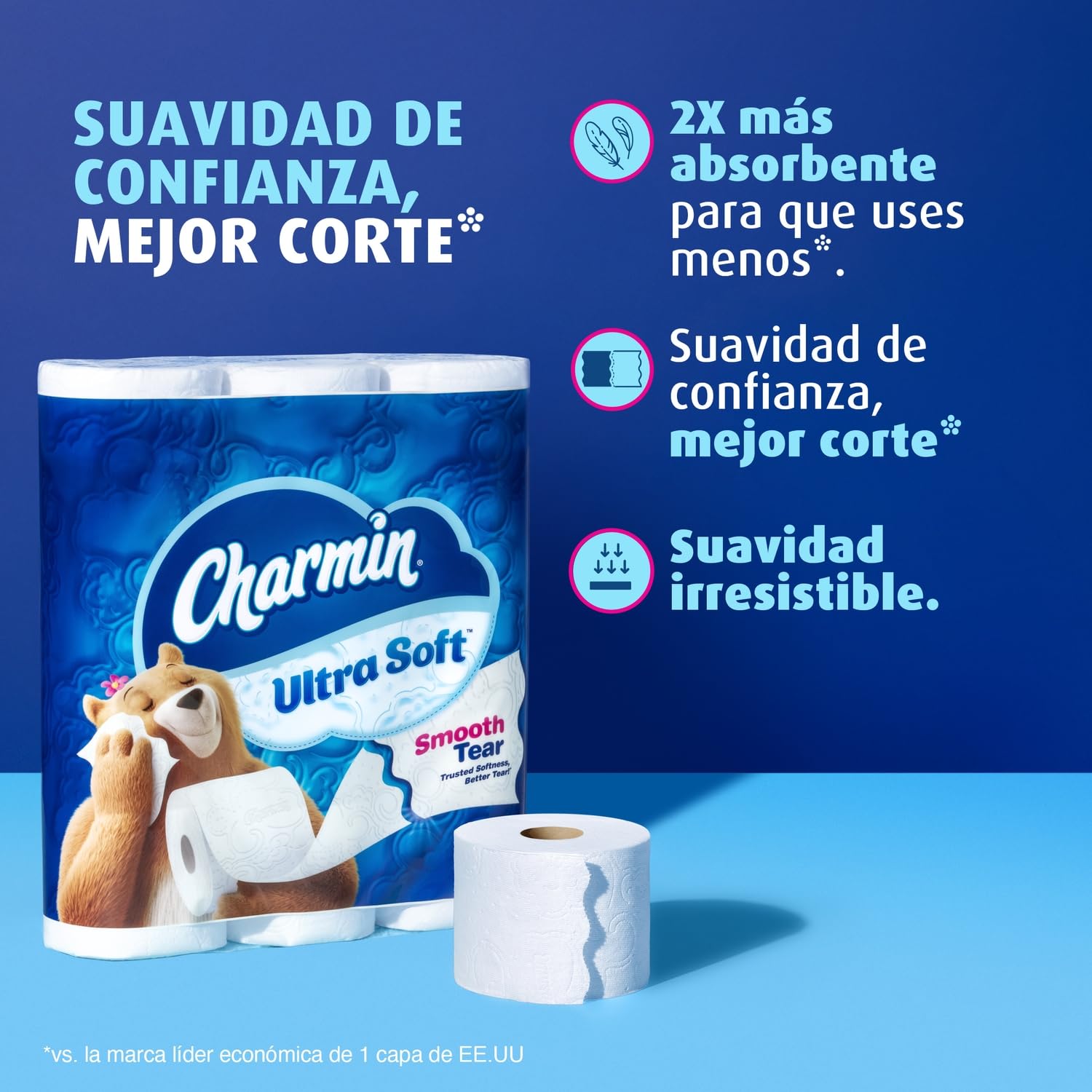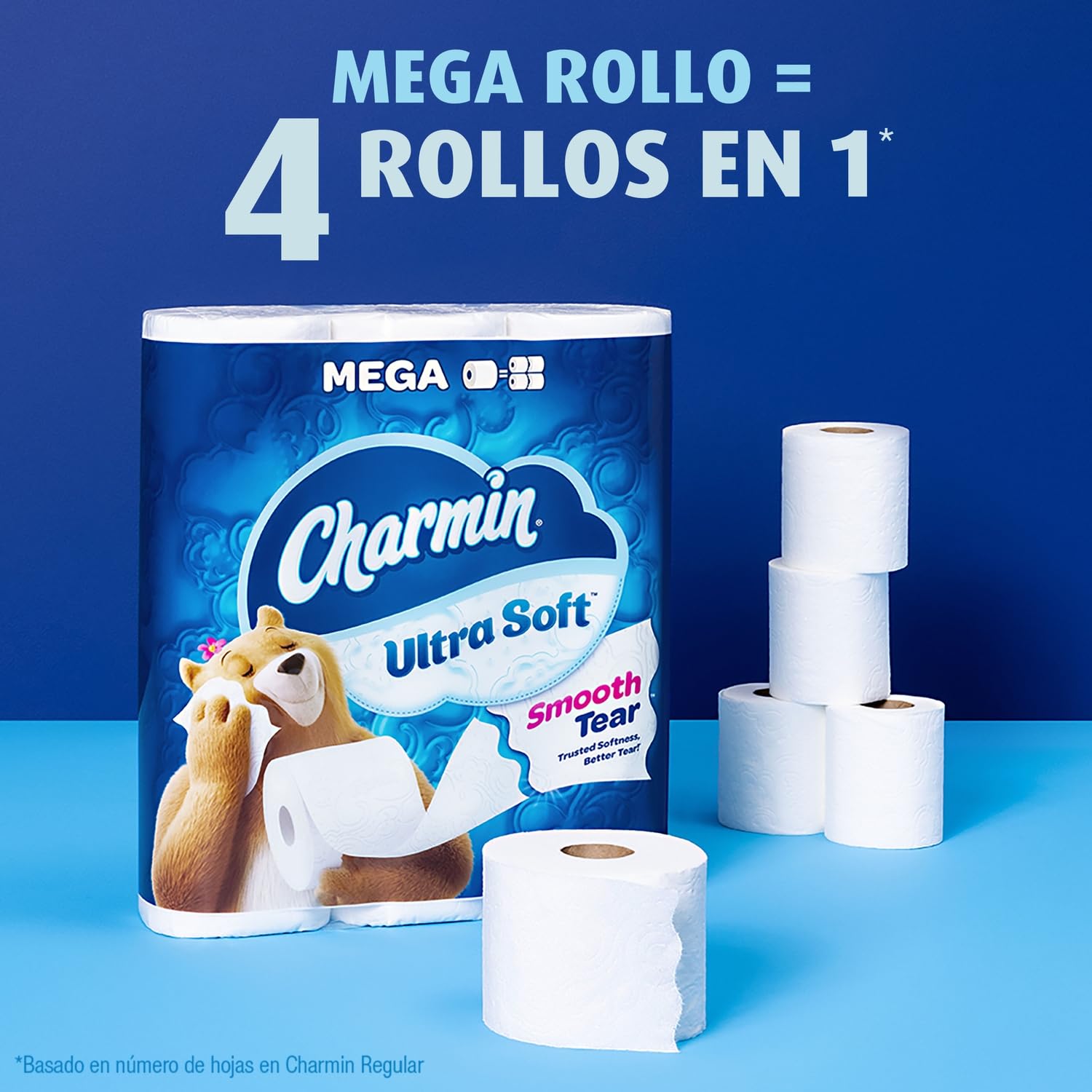 Get irresistible cush for your tush with Charmin Ultra Soft Smooth Tear™. Every roll is crafted with wavy perforations that tear better, for a smooth, more enjoyable go. And each sheet of toilet paper is 2X more absorbent so you can use less (vs. the leading USA 1-ply bargain brand). We made it MEGA in size, so you get mega value. That’s right, our Charmin Ultra Soft Mega Roll equals 4 regular rolls (based on number of sheets in Charmin Regular Roll bath tissue), so you’ll be running back to the store less and less. Our Charmin Ultra Soft toilet paper is also 2-ply and designed to be clog-safe and septic-safe. We all go, why not Enjoy The Go with America’s favorite toilet paper*. *Charmin Brand based on sales. Source: Nielsen 2022 dollar sales.