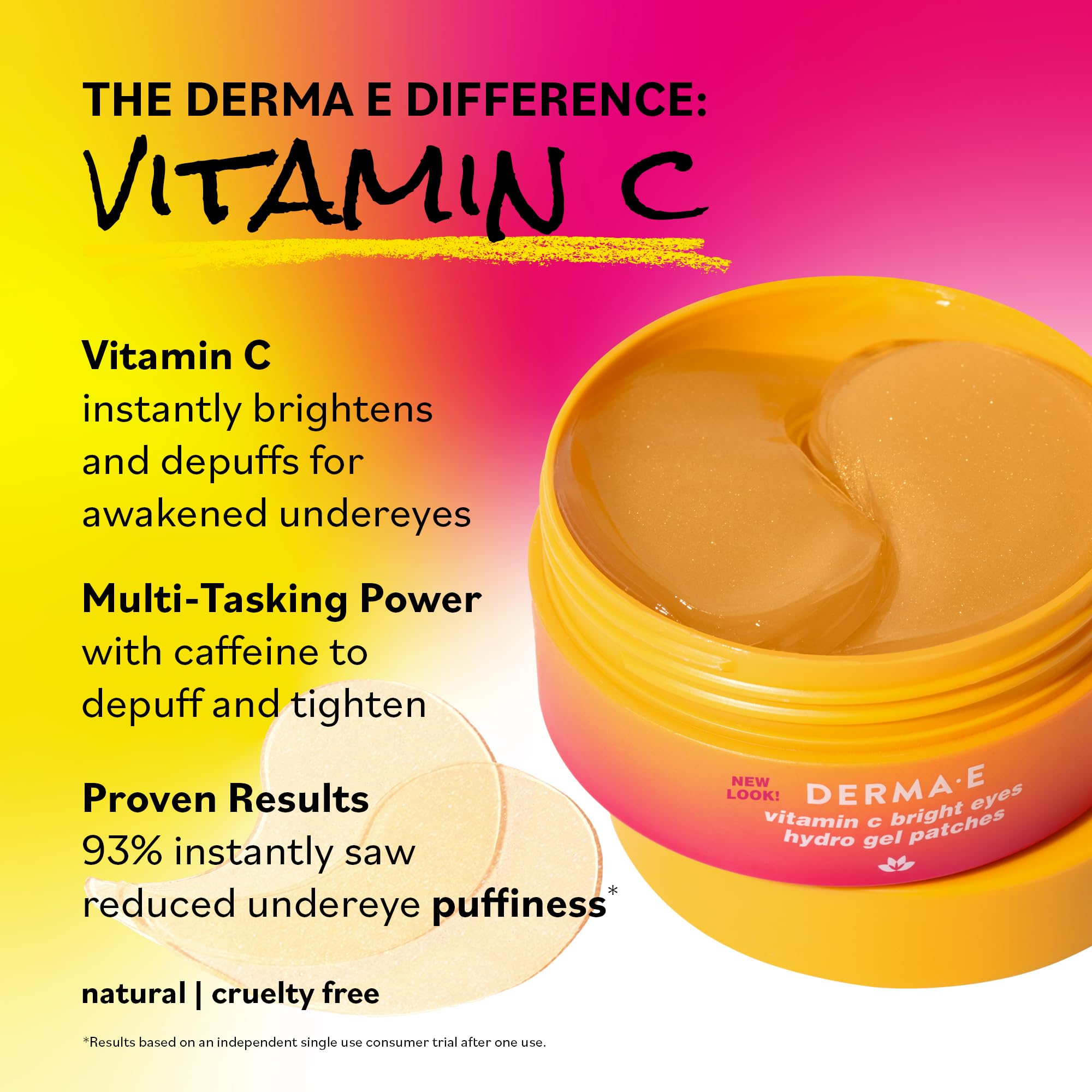 Derma E Vitamin C Bright Eyes Hydro Gel Under Eye Patches for Dark Circles (60 Ct, 30 Pairs) Allantoin, Caffeine & Vitamin B3, Eye Patches for Fine Lines, Wrinkles, Dark Circles & Puffy Eyes