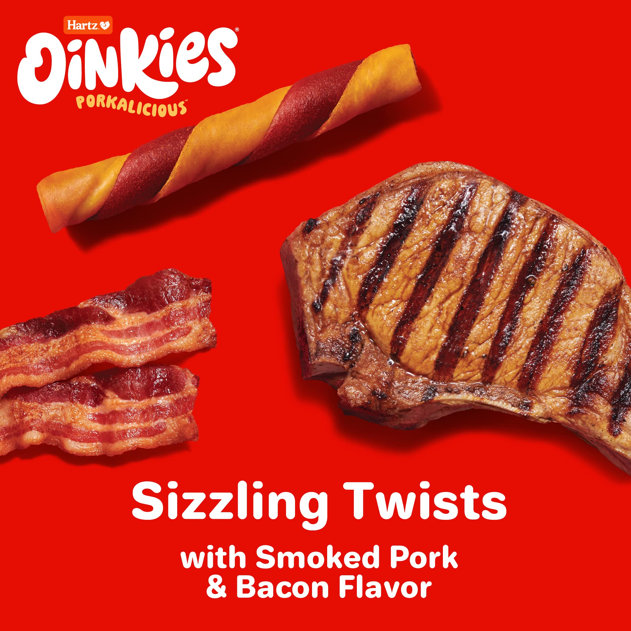 Hartz Oinkies Sizzling Twists Bacon Flavored Rawhide-Free Natural Chew Dog Treats, 8 count