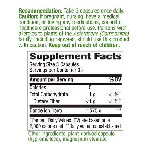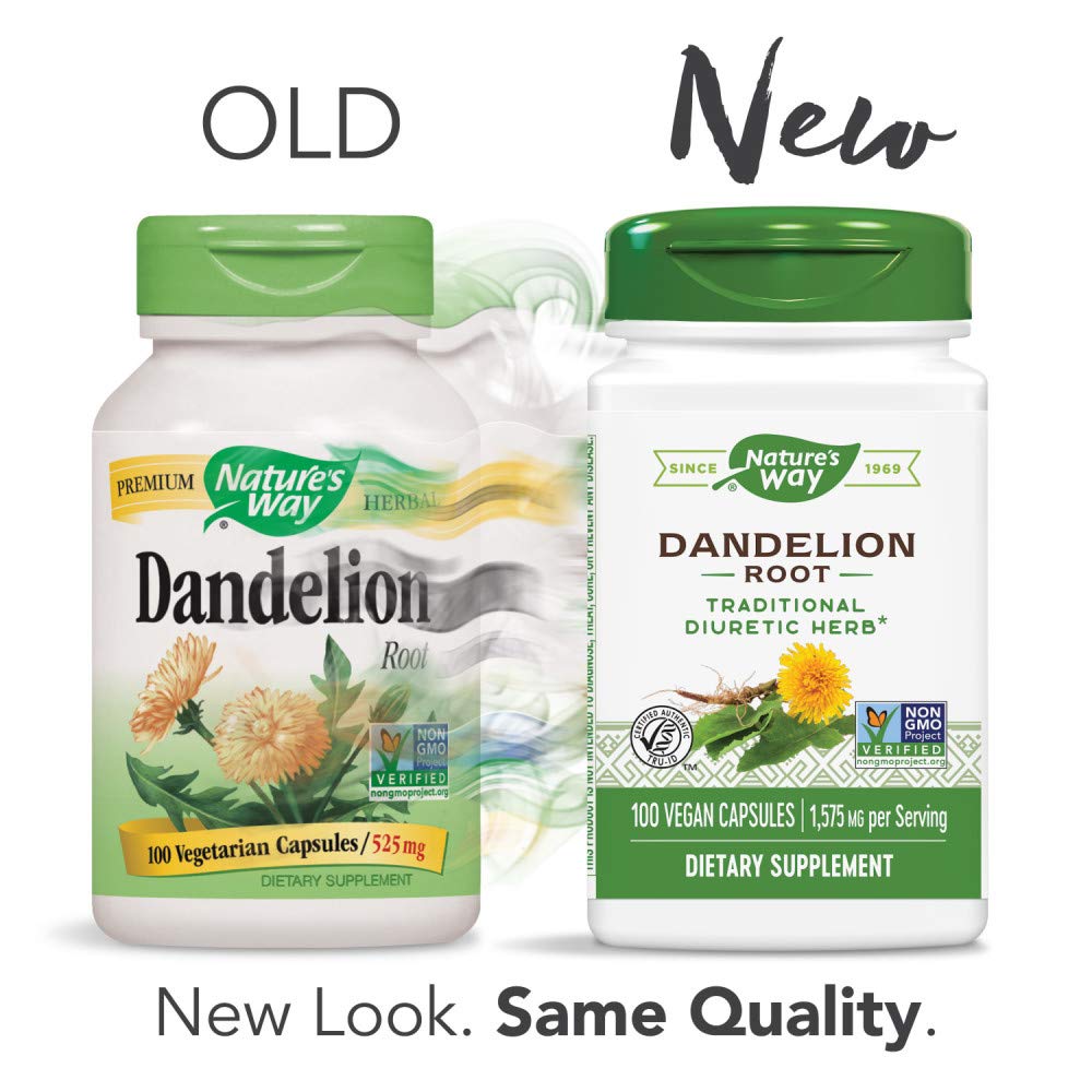 Nature's Way Dandelion Root, 1,575 mg, Non-GMO Project Verified, Gluten Free, Vegetarian, 100 Capsules, Pack of 2