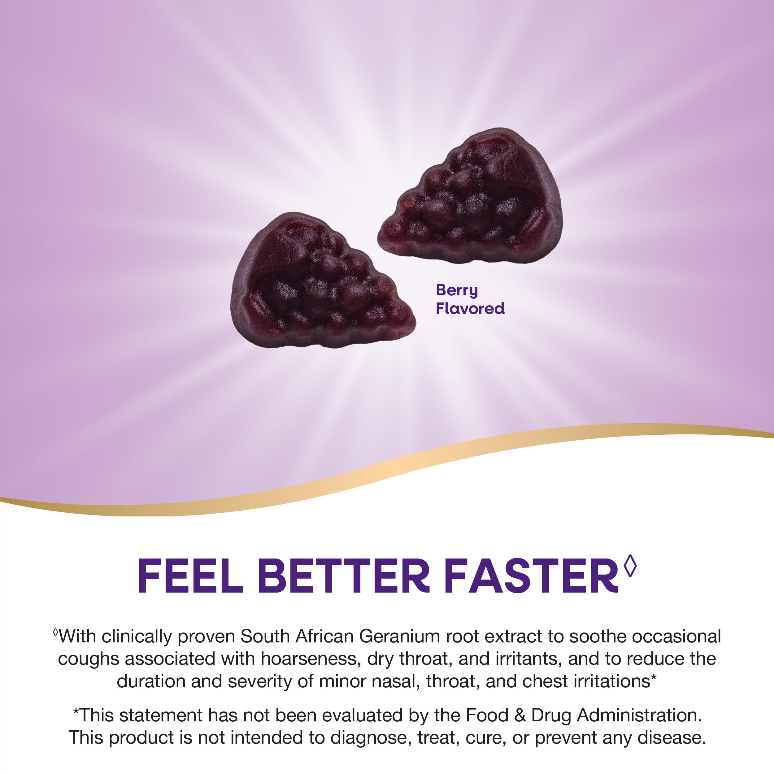 Help your little ones feel better faster with the delicious Sambucus Kids Cough Relief +(1) Immune Elderberry Gummy*, specially formulated for children ages 2+(1); These gummies contain South African Geranium root extract, which is clinically proven to reduce the duration and severity of minor nasal, throat, and chest irritations and coughs associated with hoarseness, dry throat, and irritants.* Sambucus Kids Cough Relief +(1) Immune Elderberry Gummy combines clinically proven South African Geranium root extract with black elderberry extract into one formula that unites traditional wisdom with modern science. Our proprietary South African Geranium root extract (EPs 7630) is the only clinically proven South African Geranium root extract backed by 30 years of research to be safe and effective. Research indicates that children and adults taking South African Geranium root extract at the first sign of symptoms are half as likely to need antibiotic treatment later.(2) This formula also includes vitamin C, and zinc to support immune health.* These flavorful gummies are perfect for helping your child return to school, play outside, and do the things they love faster. Plus, your little ones will love the sweet berry flavor.(1)South African Geranium root extract is clinically proven to reduce the duration and severity of minor nasal, throat, and chest irritations and occasional coughs associated with hoarseness, dry throat, and irritants.**These statements have not been evaluated by the Food and Drug Administration. This product is not intended to diagnose, treat, cure, or prevent any disease.(2)Based on a 2020 retrospective analysis of the IMS® Disease Analyzer database; use of South African Geranium Root Extract (Pelargoniumsidoides EPs 7630) root extract was significantly associated with reduced antibiotic prescriptions in the further course of illness in children and adults and fewer sick leaves >7 days in adults.
