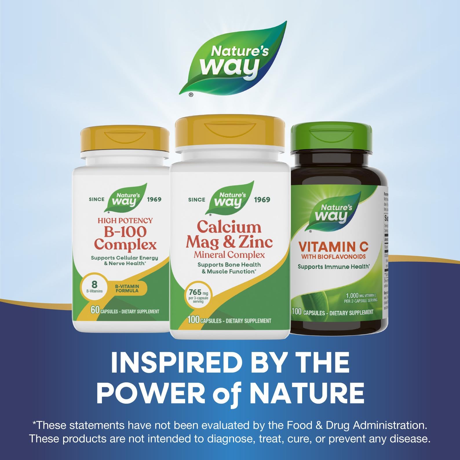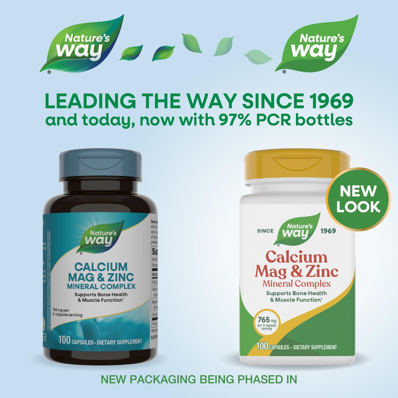 Nature's Way Calcium Magnesium & Zinc Mineral Complex, Supports Bone Health & Muscle Function*, Immune Support*, 765 mg per 3-capsule serving, Gluten free, 100 Capsules (Packaging May Vary)