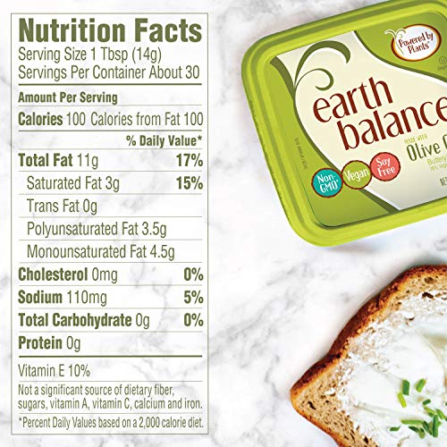 For a savory, sophisticated flavor, try Earth Balance Olive Oil Buttery Spread. This delicious vegan butter alternative is great as a spread or for baking and frying your favorite foods. It contains no soy, is non-dairy and is non-GMO. From spreads to snacks, our plant-based products are created with integrity, mindfulness and the goal of having a positive impact. Go ahead, spread some on ... Earth Balance is made for everyone.