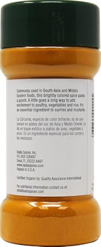 Badia Organic Turmeric Powder, 7 oz – Rich in Curcumin, Perfect for Cooking, Smoothies, and Wellness