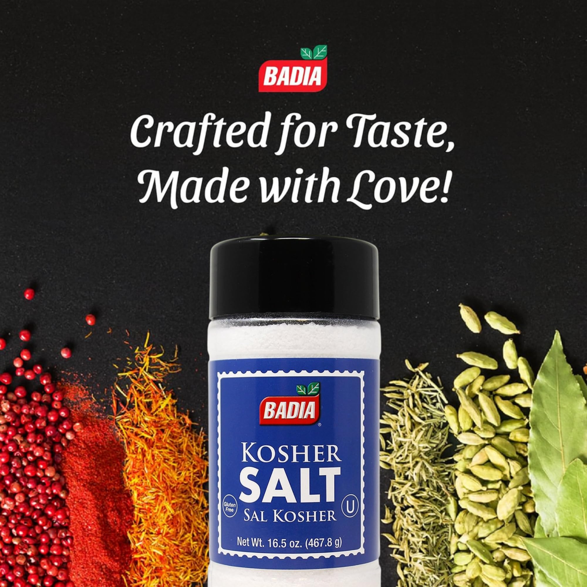 Badia Kosher Salt, 16.5 oz – Essential Kitchen Kosher Salt for Cooking, Baking & Everyday Seasoning