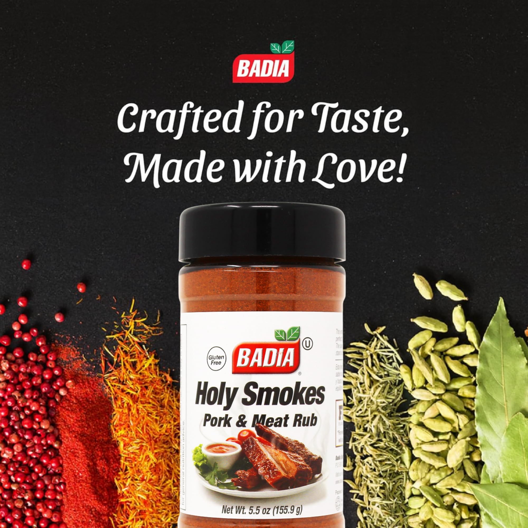 Badia Holy Smokes Pork & Meat Rub is a bold, smoky seasoning crafted for meat lovers who take their grilling seriously. This expertly blended rub delivers a punch of hickory-style smokiness with savory herbs and a touch of sweetness, perfect for transforming pork ribs, pulled pork, brisket, or even chicken into mouthwatering masterpieces. Whether you're smoking low and slow or roasting in the oven, this rub helps lock in flavor and tenderness. With no MSG and Kosher certification, it’s a clean, flavorful option for BBQ pros and home cooks alike.