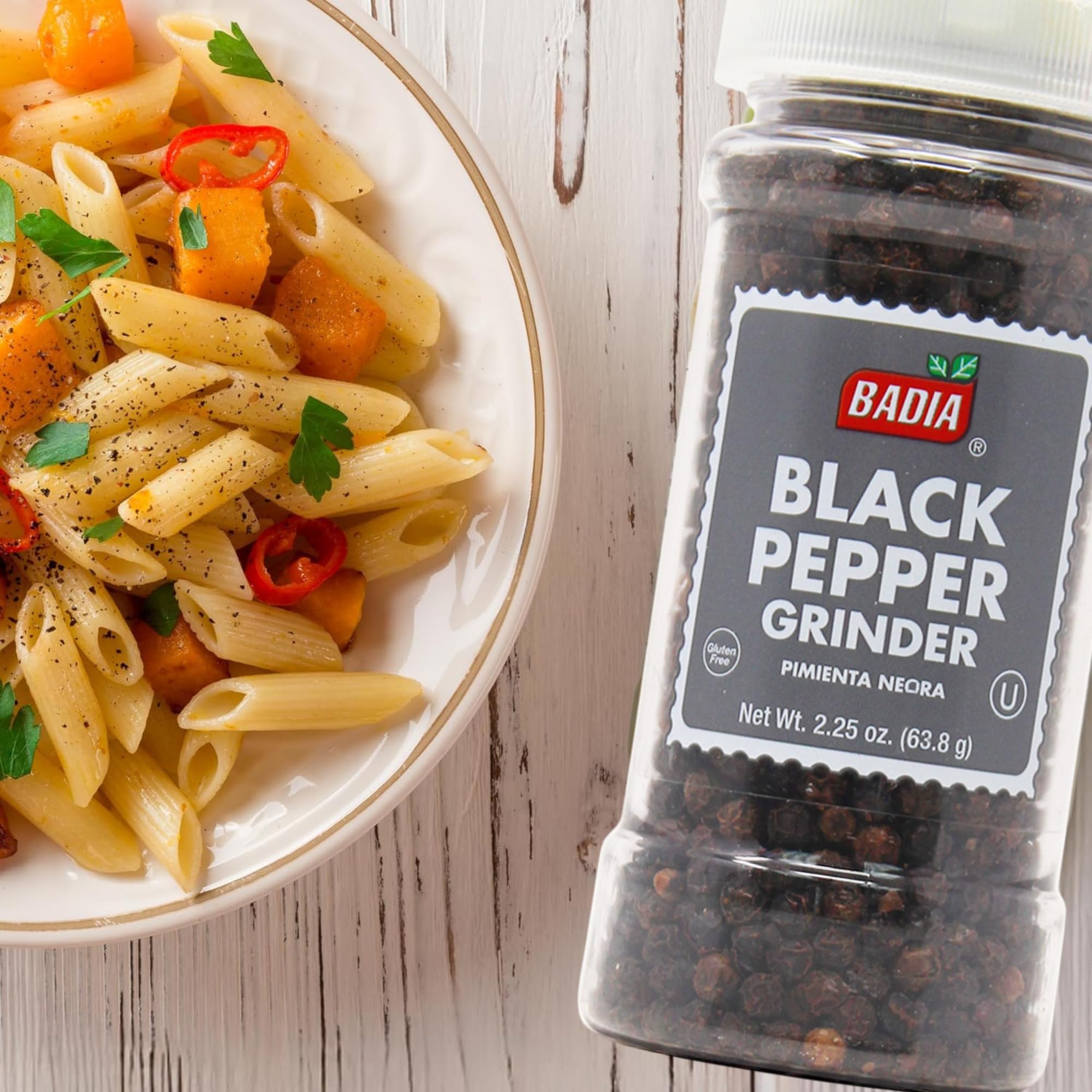 Badia Black Pepper Grinder brings out the pure, bold flavor of premium peppercorns freshly ground with every turn. This convenient, built-in grinder offers customizable texture for every recipe—whether you’re adding a fine dusting to sauces or a coarse finish to grilled meats and vegetables. Versatile and aromatic, it’s an essential staple in any kitchen. From everyday meals to gourmet dishes, Badia’s long-standing commitment to quality ensures exceptional taste in every twist.