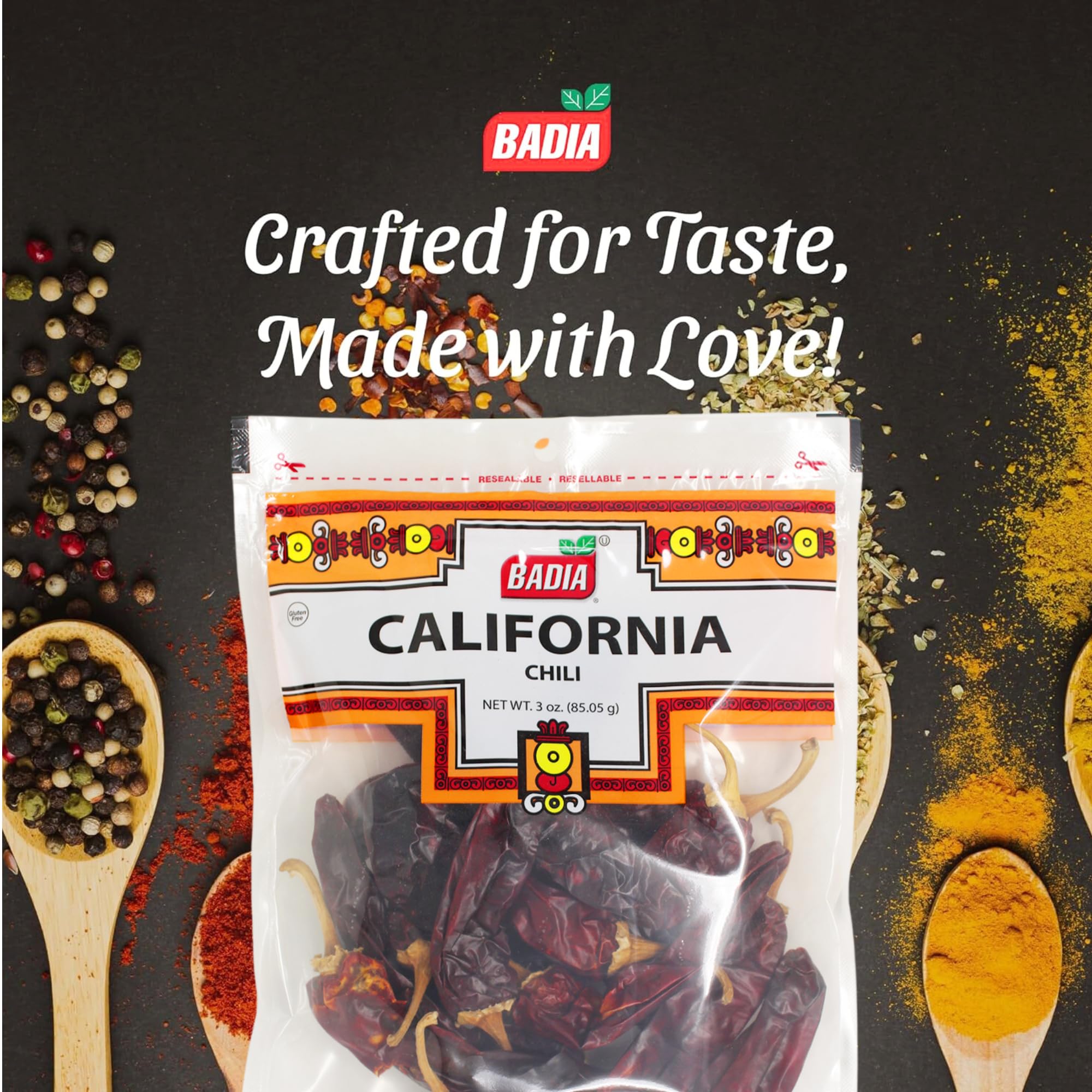 Badia California Chili Whole, 3 oz – Dried Mild Chili Peppers for Mexican-Style Cooking