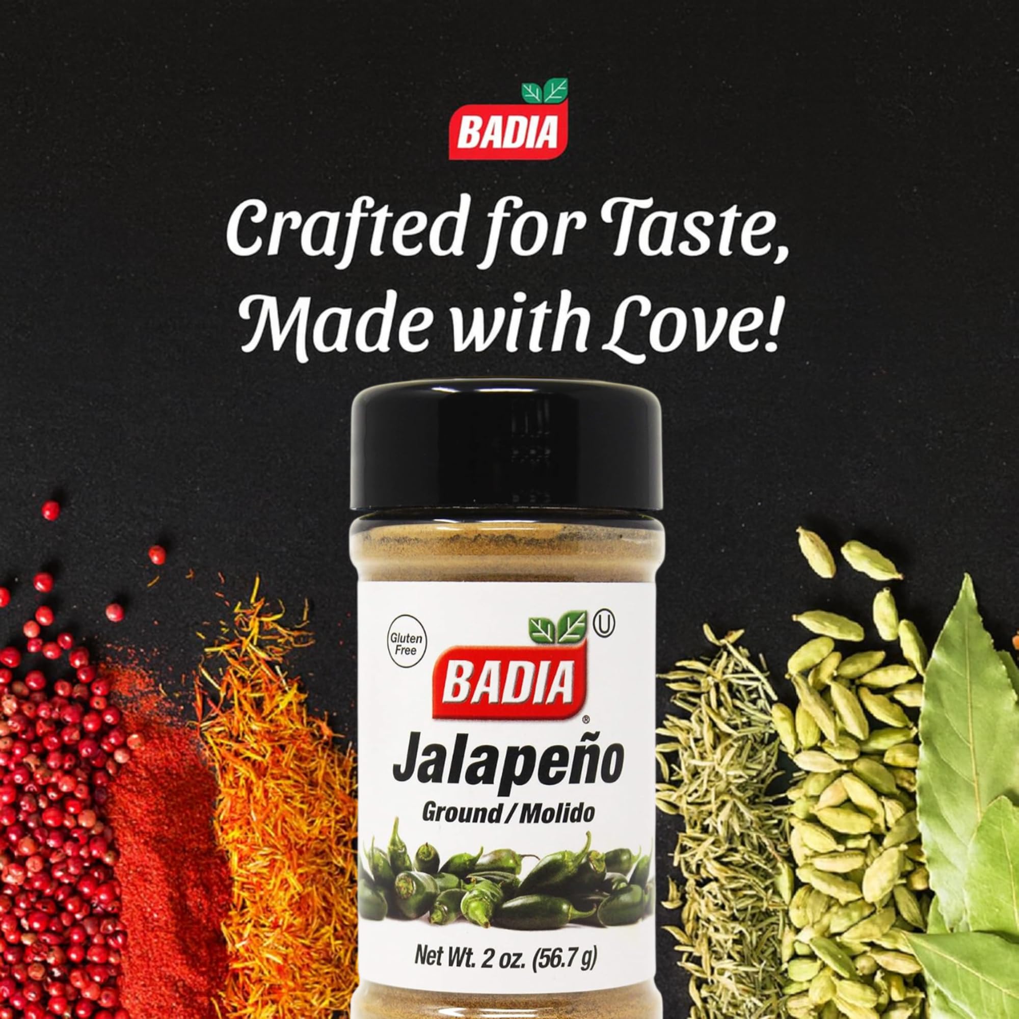 Badia Ground Jalapeno, 2 oz – Green Chili Powder Jalapeño Spice - Zesty Flavor, Medium Heat for Tacos, Meats, Salsa & Chili