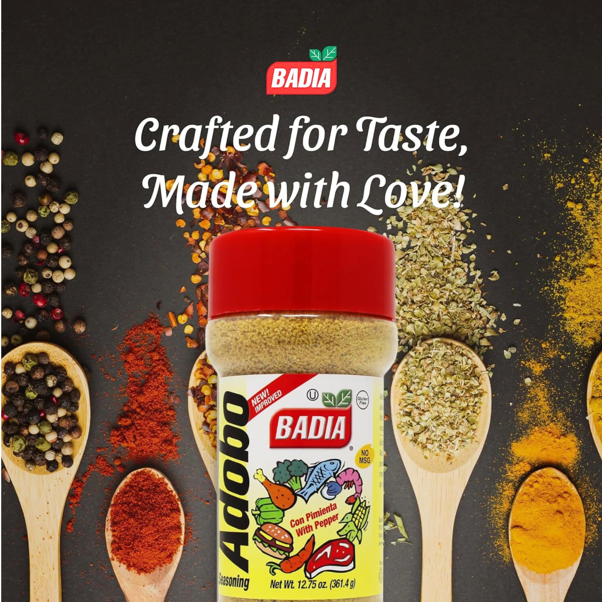 Badia Adobo with Pepper, 12.75 oz – Smoky, Spicy & Savory for Meats, Chicken, Seafood, and Vegetables