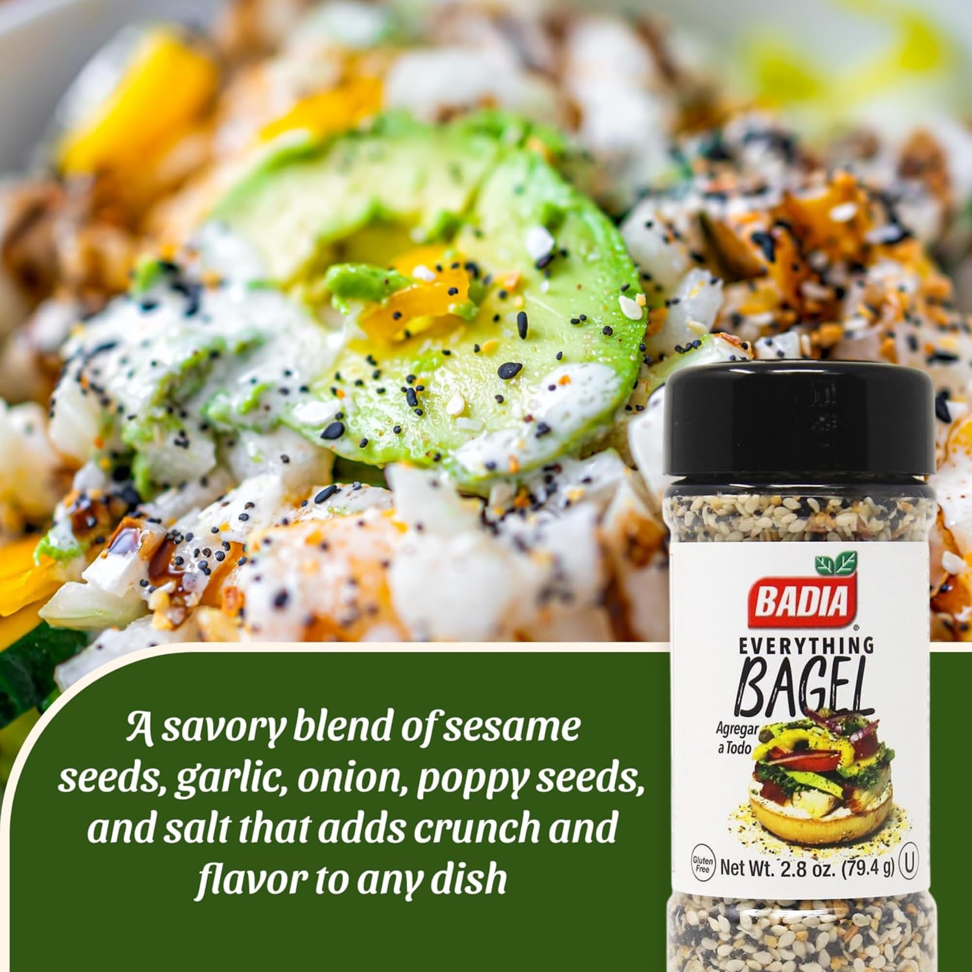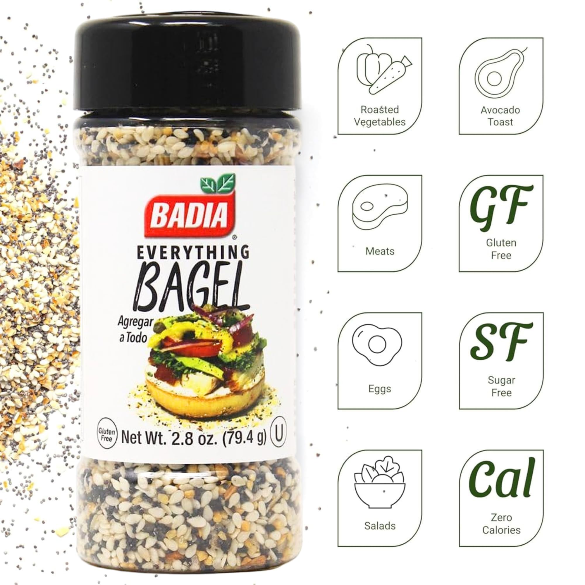 Transform your meals with badia everything bagel seasoning blend, a bold mix of sesame seeds, garlic, onion, poppy seeds, and salt. This versatile all-purpose seasoning is perfect for bagels, avocado toast, eggs, salads, and roasted veggies. Crafted with premium ingredients, it delivers consistent flavor and crunch to every dish. No artificial additives, itβs a clean, wholesome choice for adding savory flavor to your kitchen. Elevate your cooking with this must-have seasoning blend.