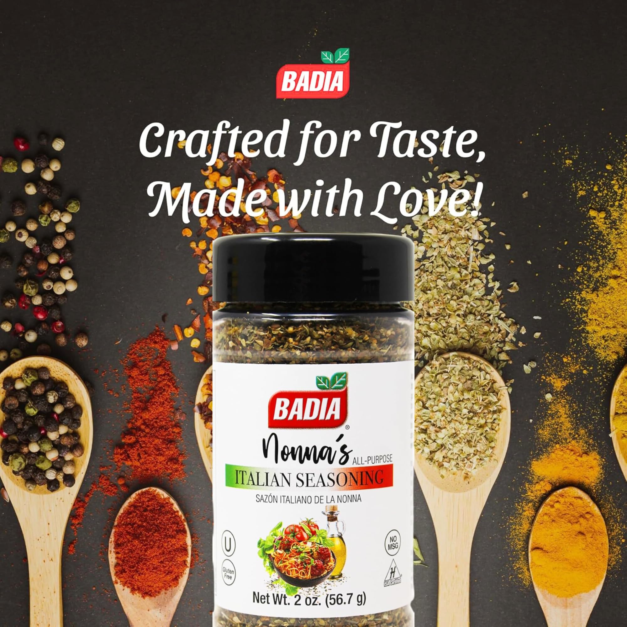 Bring authentic Italian flavor to your kitchen with Badia Nonna’s All Purpose Italian Seasoning. This aromatic blend of oregano, basil, garlic, and salt adds savory depth to pasta, pizza, meats, vegetables, sauces, and soups. Gluten free and perfect for everyday cooking, it delivers the taste of classic Italian herbs in every sprinkle. Convenient 2 oz shaker makes seasoning easy at home or on the go.
