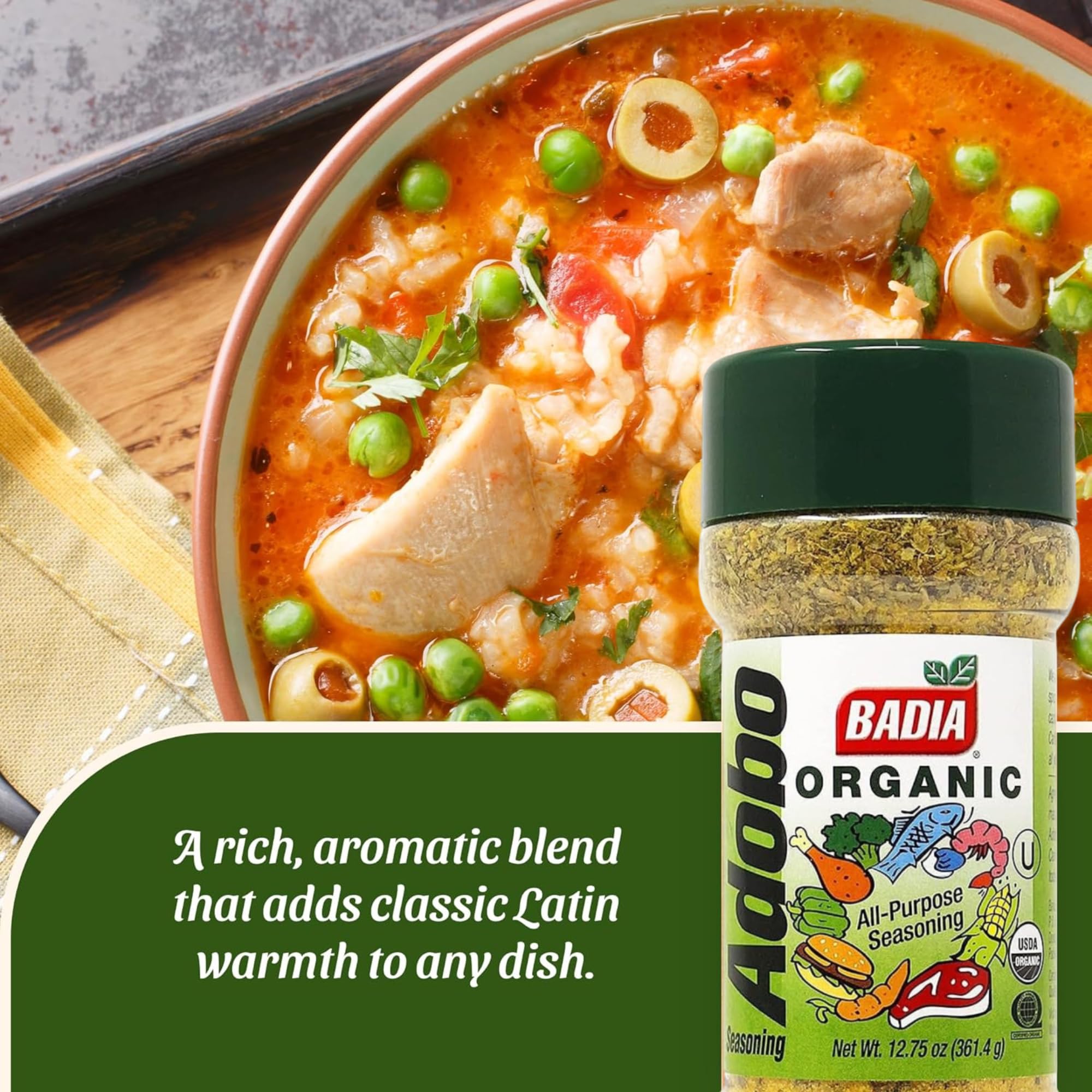 Badia Organic Adobo All-Purpose Seasoning, 12.75 oz – Flavorful Blend for Cooking & Grilling – Certified Organic