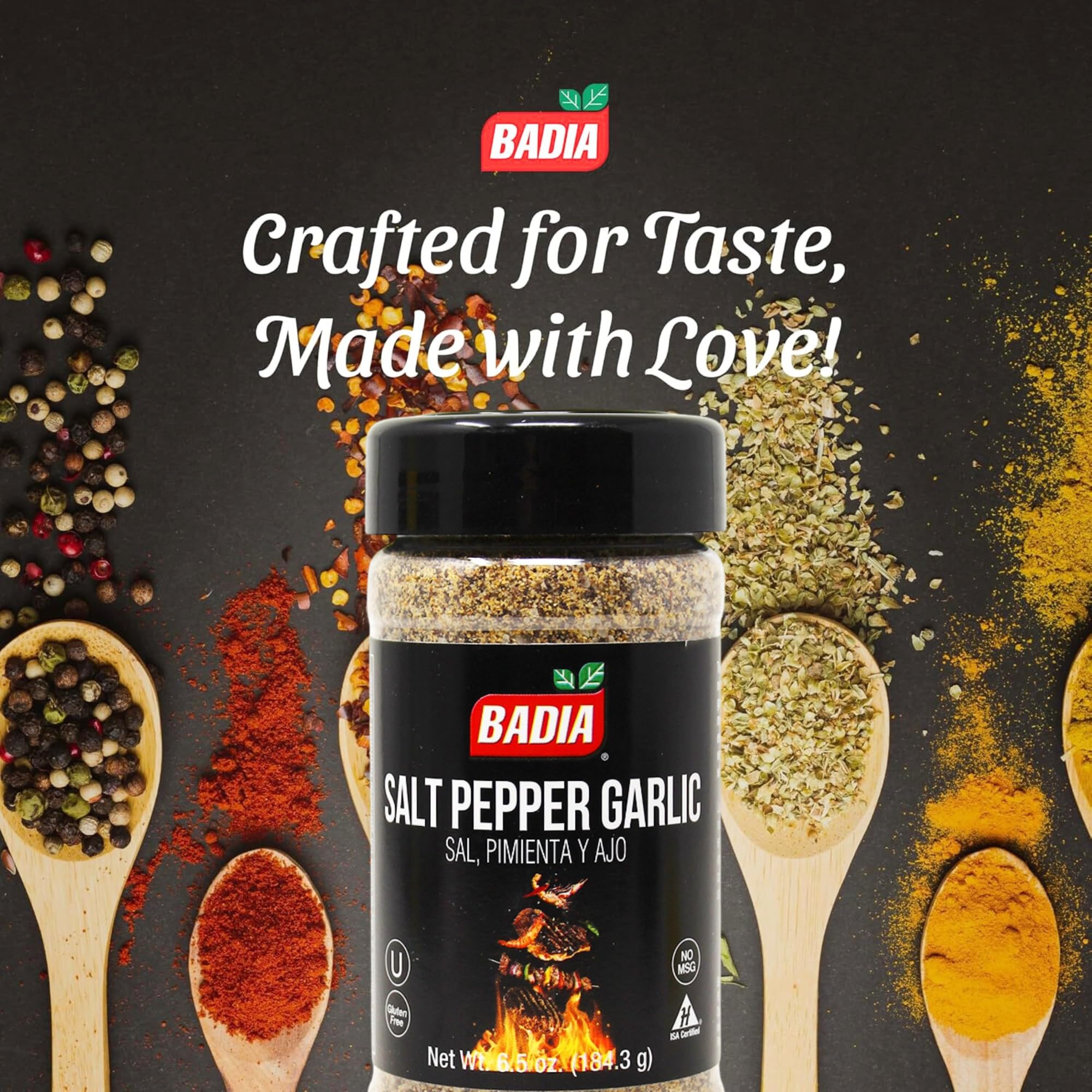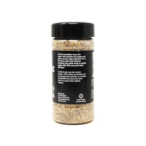 Badia Salt Pepper Garlic Seasoning, 6.5 oz - All Purpose Spice Blend for Rubs, Beef, Chicken, Steak, Vegetables - Gluten Free, No MSG