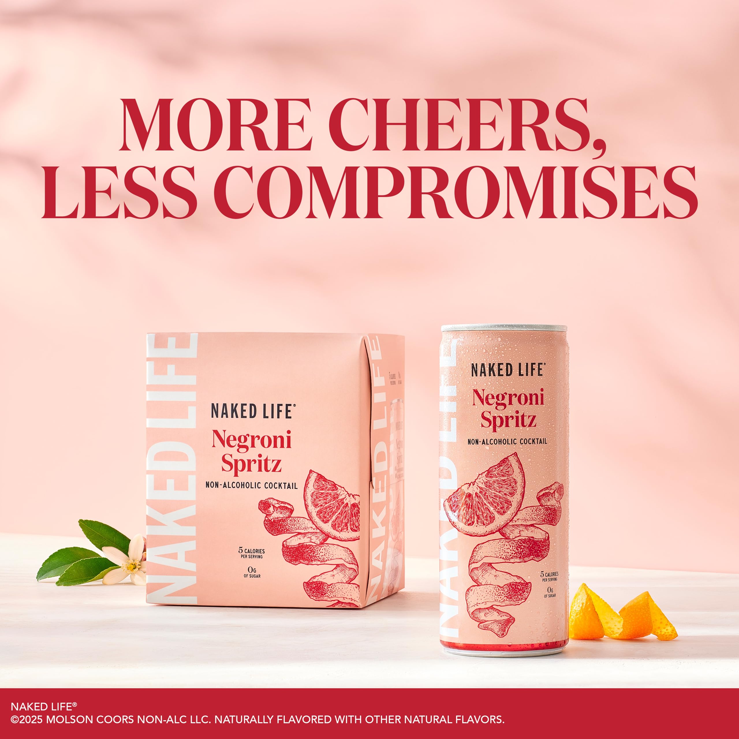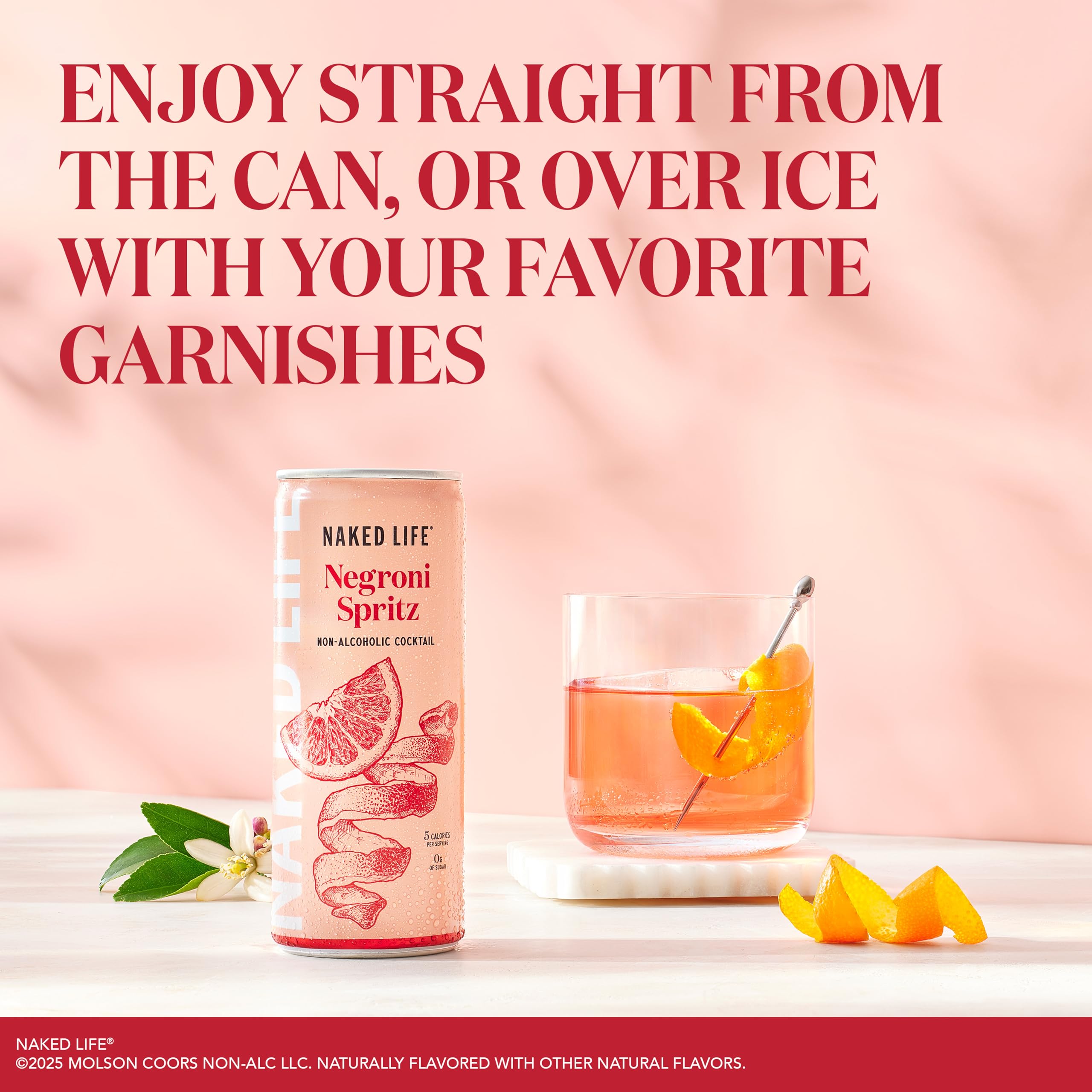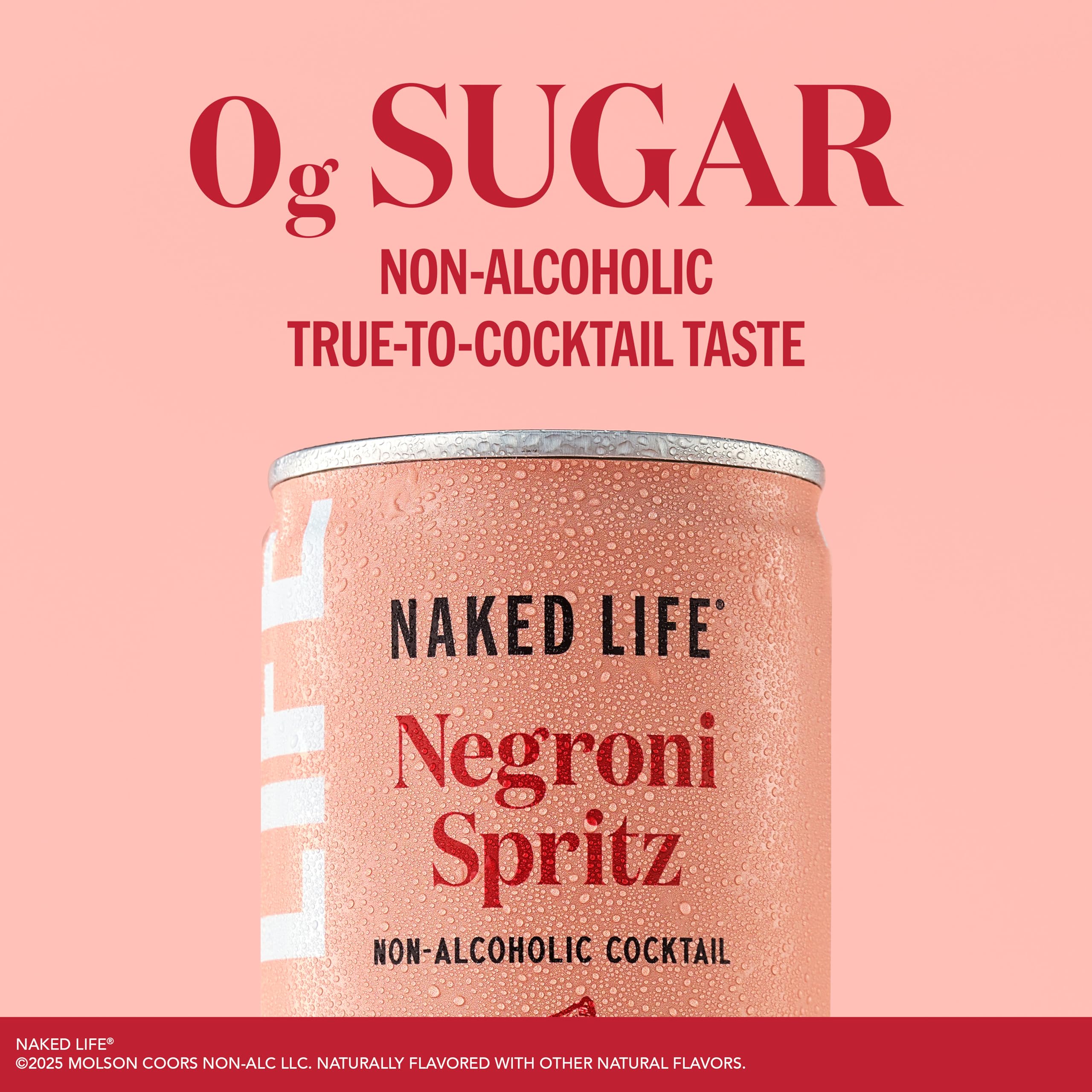 Naked Life Non-Alcoholic Drinks, Negroni Spritz, Zero Sugar, Award-Winning Alcohol-Free Cocktail, Low Calorie 4 pack, 8.4 fl oz cans