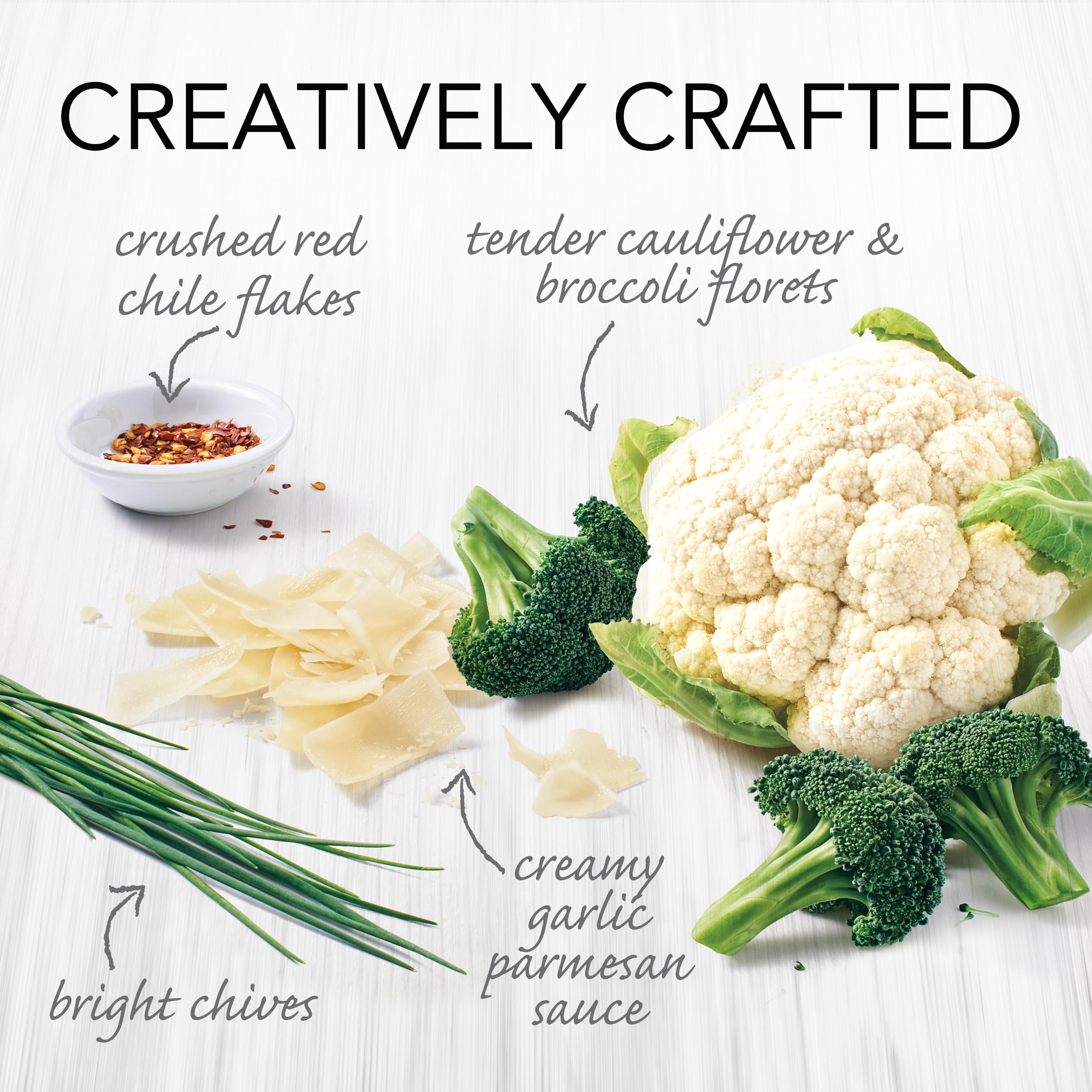 Oh yes, it's au gratin! Eating vegetables never tasted better with Alexia Broccoli & Cauliflower Au Gratin. Enjoy perfectly tender cauliflower and broccoli florets in a creamy garlic Parmesan sauce, finished with a touch of bright chives and red chili flakes. This sensational side dish is easy to prepare and impossible to resist. Gluten-free and all natural*, these are the perfect frozen vegetables to share with friends and family. Savor the delight in every bite of this frozen broccoli cauliflower dish with convenient prep in the microwave or oven. Alexia selects the finest ingredients to create distinctive, inspired and convenient side dishes that live up to our high standards. * No artificial ingredients, minimally processed.