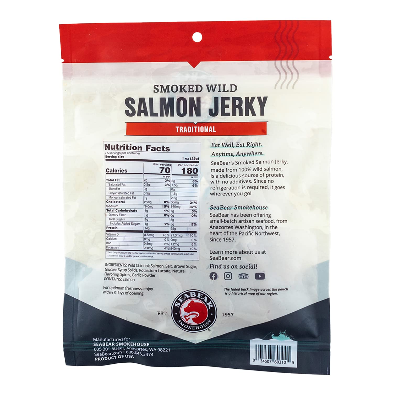 SeaBear - Smoked Wild Salmon Jerky - Traditional - 2.5 oz